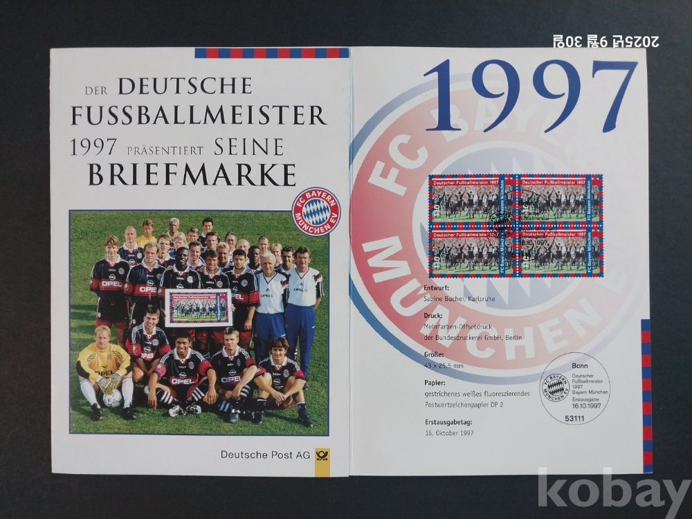 독일리그우승 기념첩(바이에른뮨헨) 우표블럭,단편우표