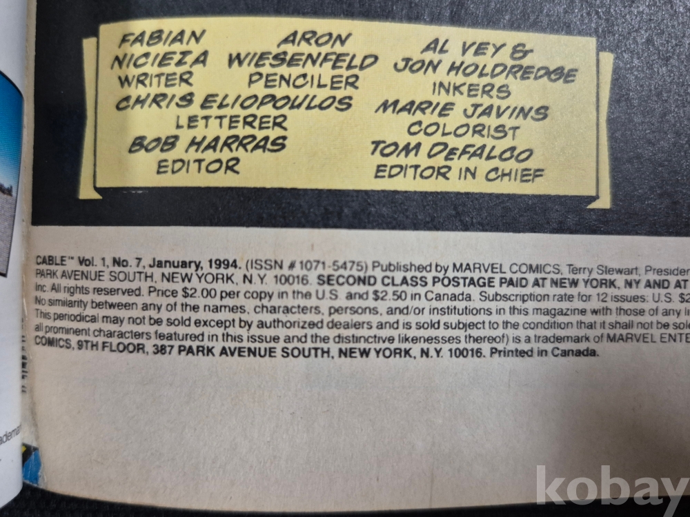 [슈퍼히어로 만화 모음展] - 케이블(CABLE) / Vol.1 #7 - 1994년 1월 / 마블 코믹스(MARVEL COMICS)