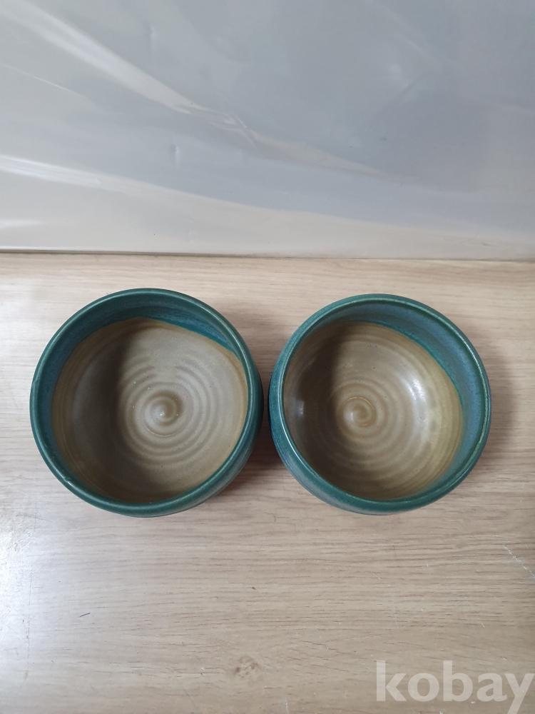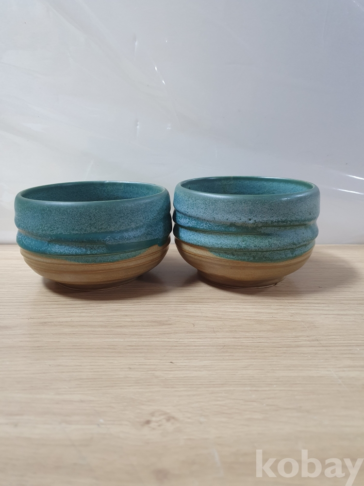 {천원경매} 11-0632 민트색 테두리 그릇(11*11*8)