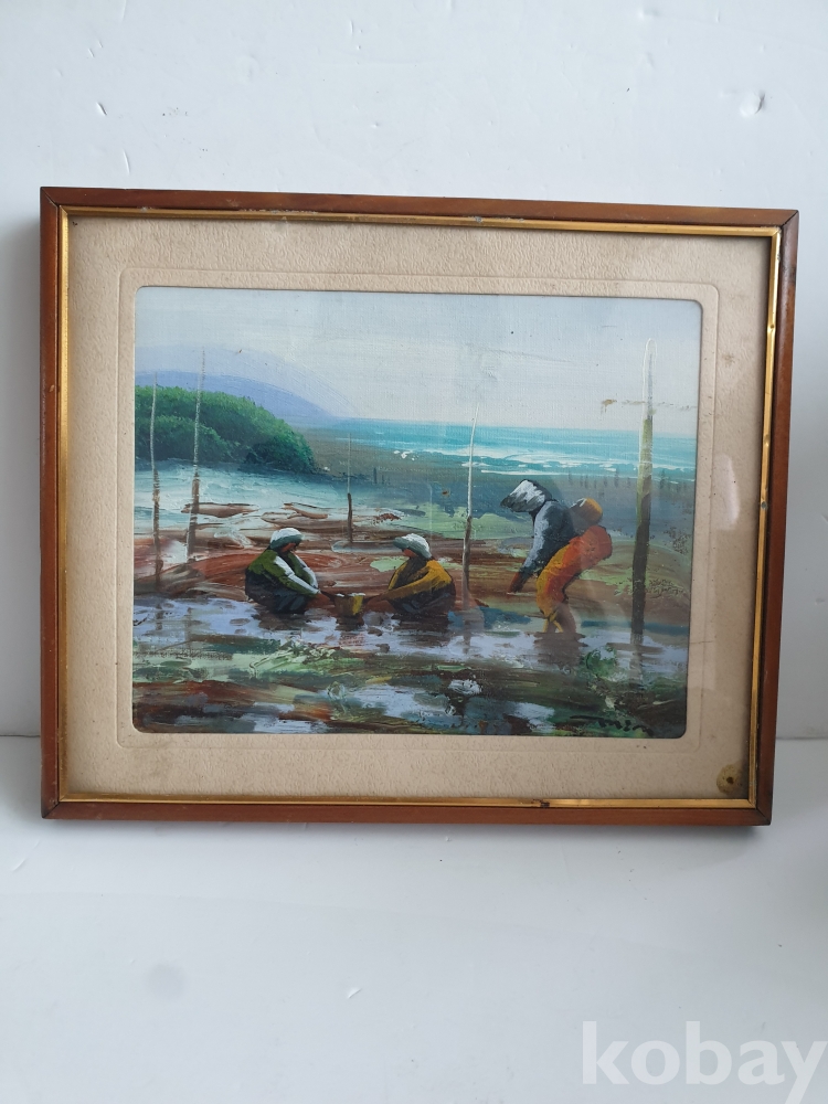 [천원경매] 10-116 옛날 느낌의 유화 인테리어 액자(31.5*27cm, 사용감 있음, 유리커버 있음)