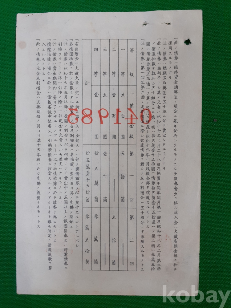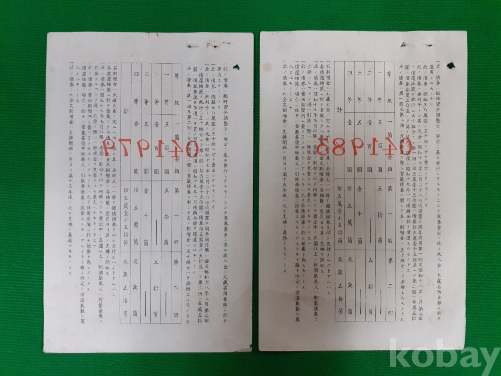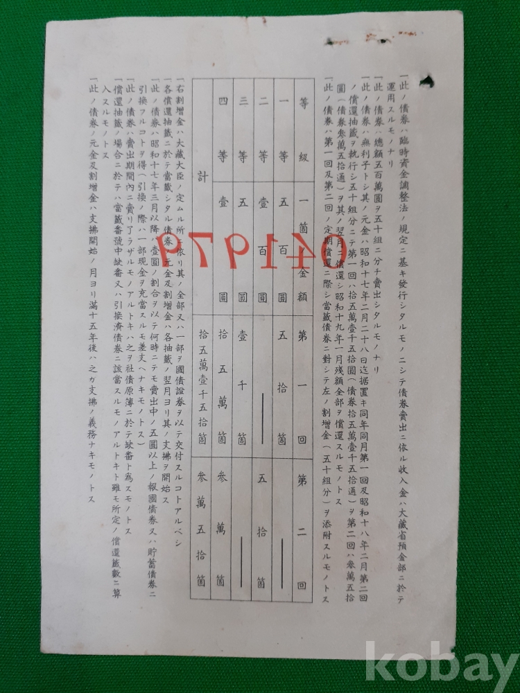 채권 앞면에는 "割増金附報國債券" (할증금 부 보국채권)이라는 문구가 새겨져 있는데, 이는 당첨금을 지급하는 복권의 성격을 가졌음을 의미합니다.