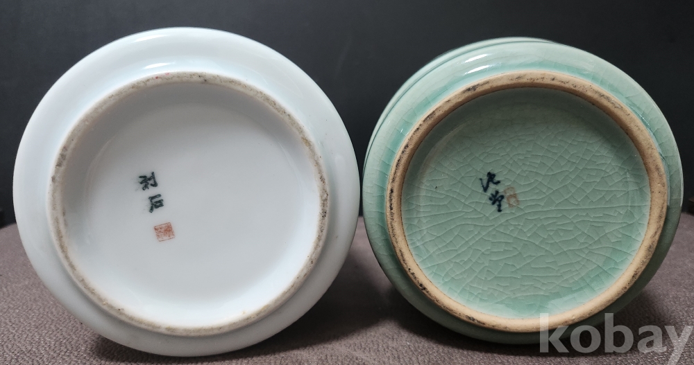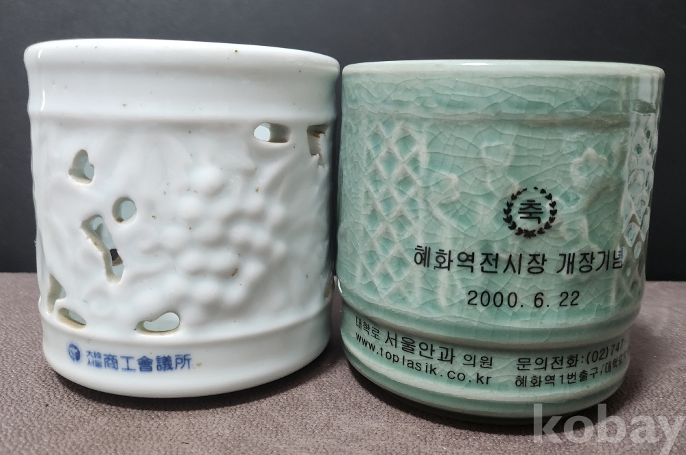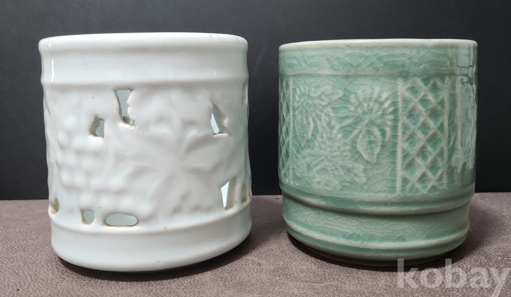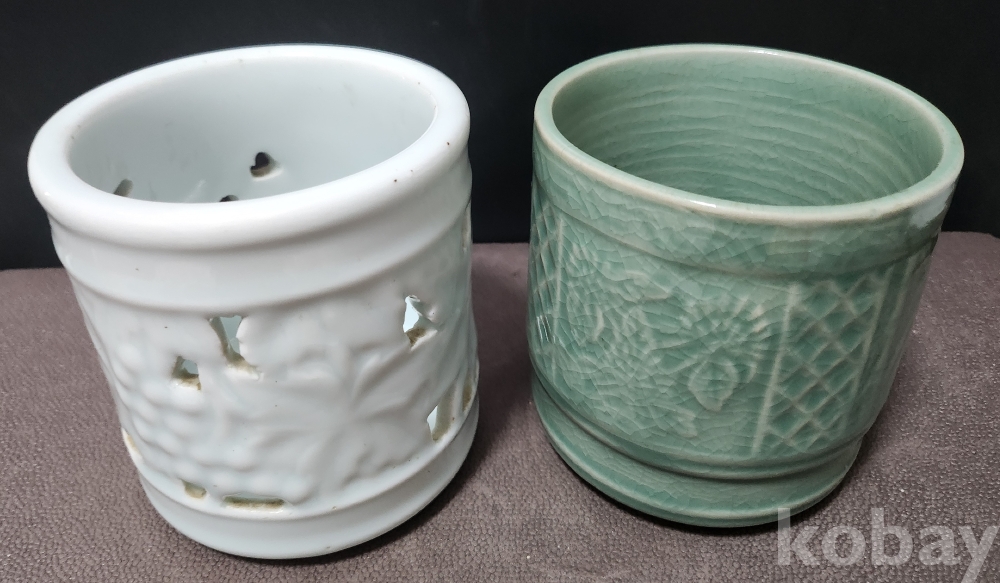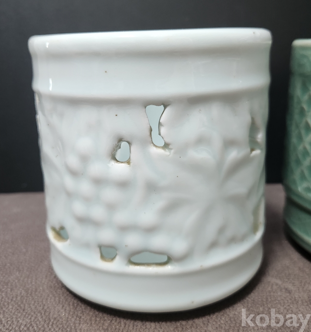 백자투각음각포도문필통 白磁透刻陰刻葡萄紋筆筒 청자음각사군자문필통 靑瓷陰刻四君子紋筆筒