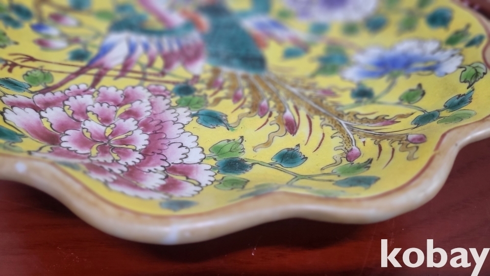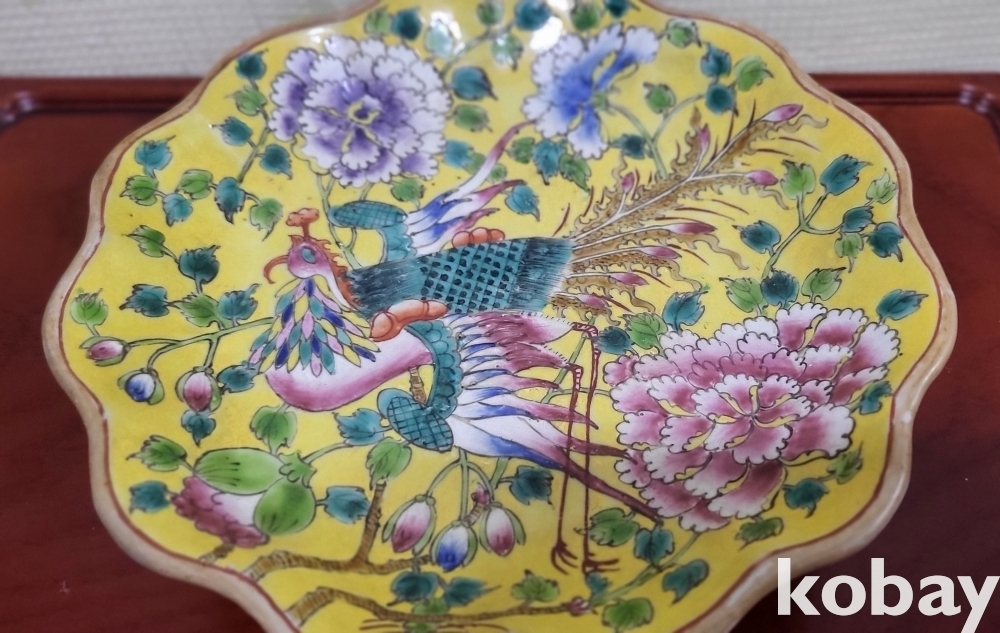 동치연제(1862ㅡ1874) 관지 봉황과 목단 문양 화형 완입니다,