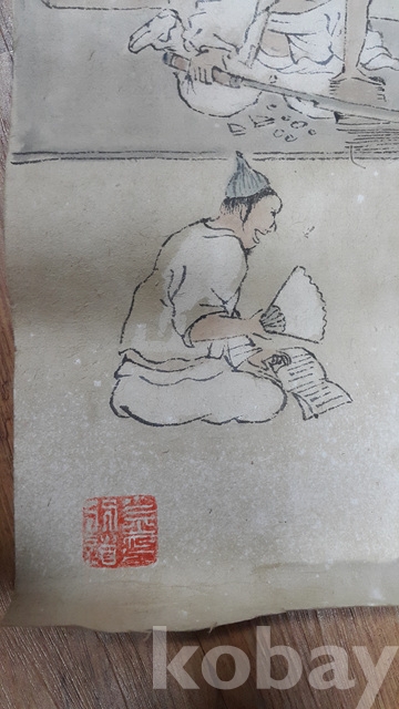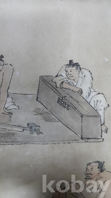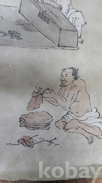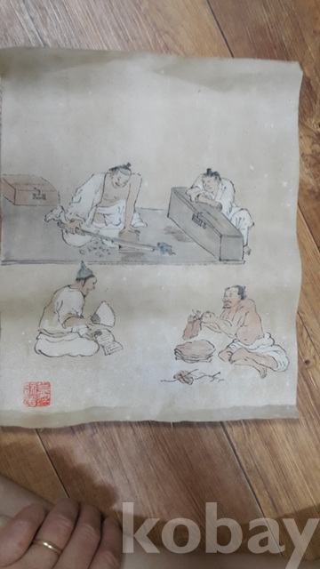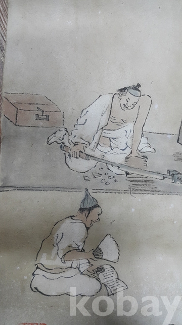 바-84.단원 김홍도의 담배썰기(한지닥종이에실체그린그림)