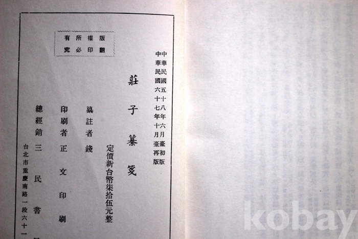 (중국서적) 莊子纂箋 (장자찬전) - 1978년. 중국발행