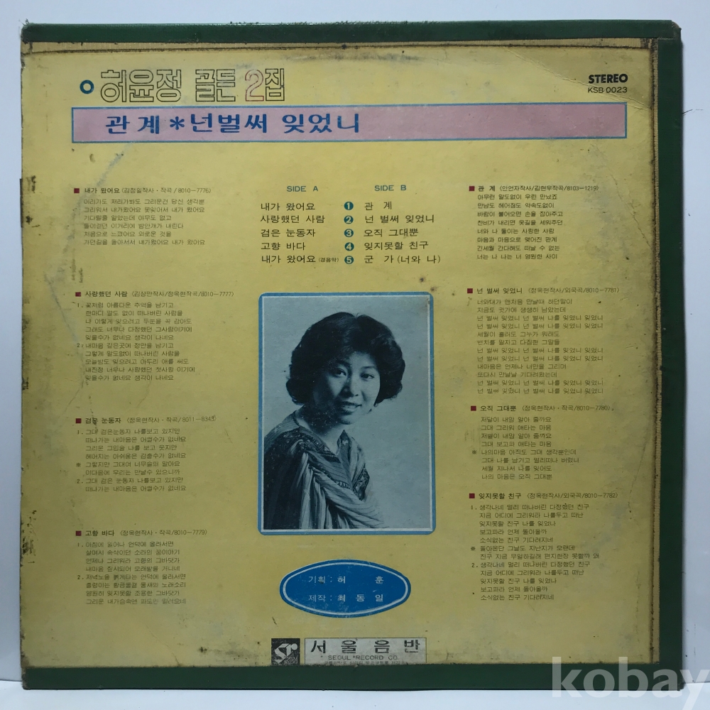 | 자켓상태 | VG : 주름, 접힘, 모서리 찢김 다수 | 음반상태 | VG : 생활 기스 다수, 가벼운 노이즈 존재 | 발매정보 | 알수없음 | 가사지여부 | 무 |