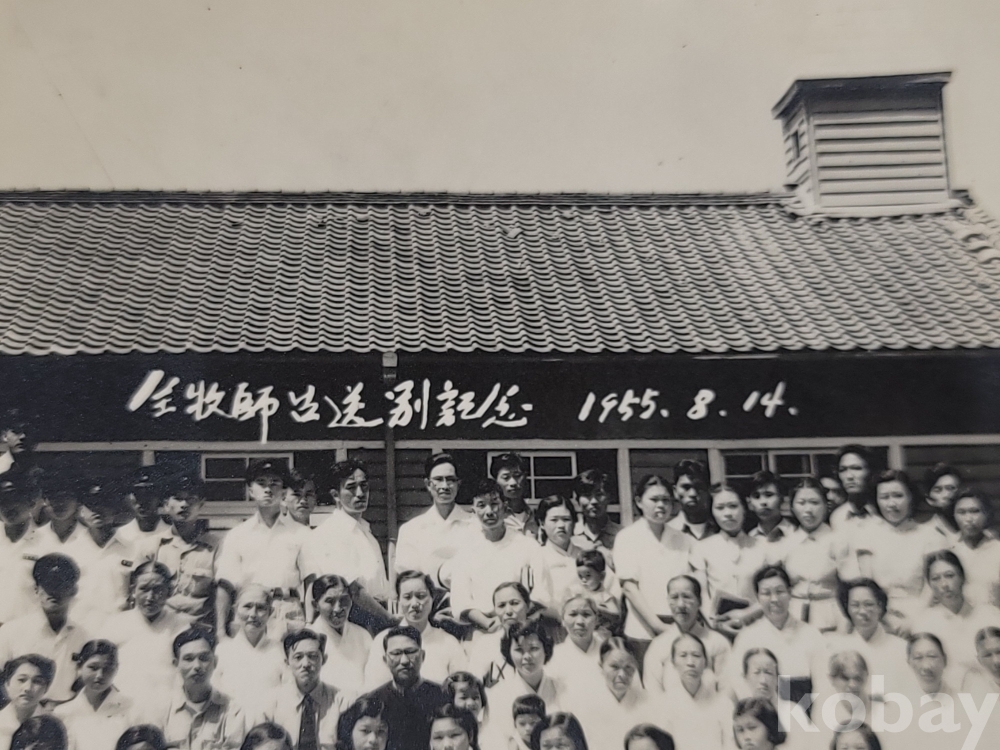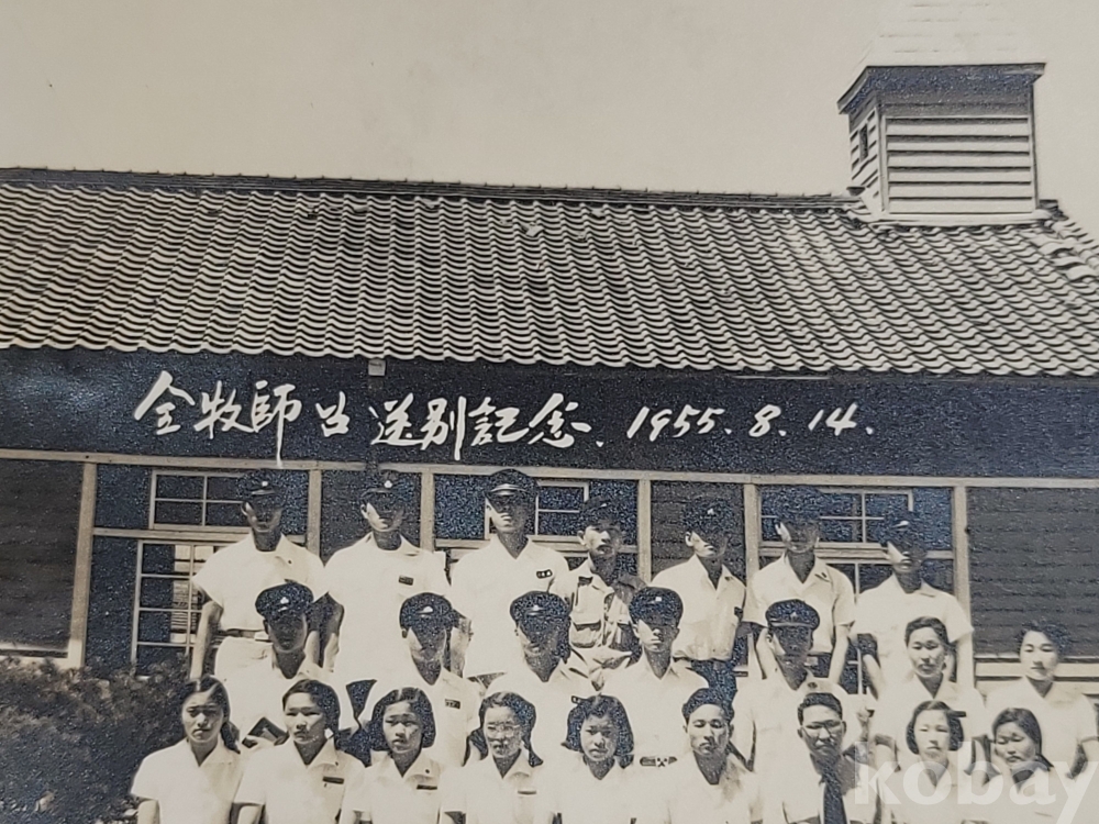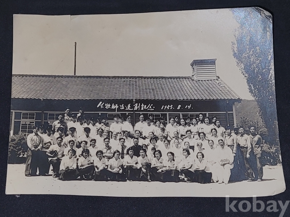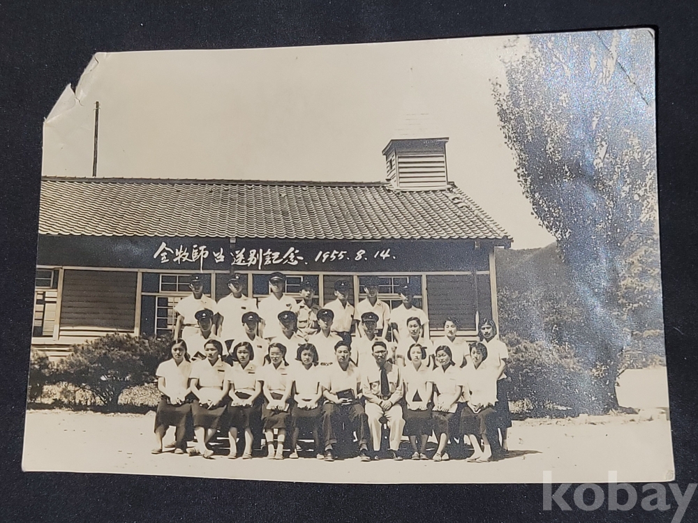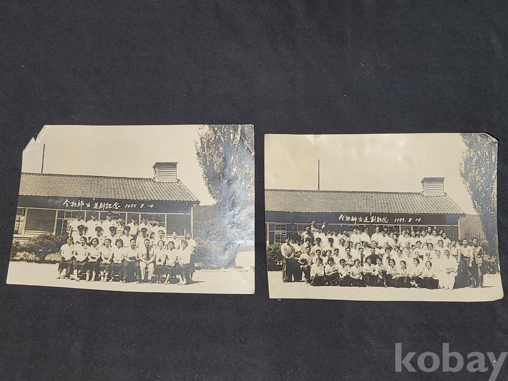 빈티지 세월 감이 느껴지는 1955년 송별 기념 단체 흑백사진 2장 일괄입니다.