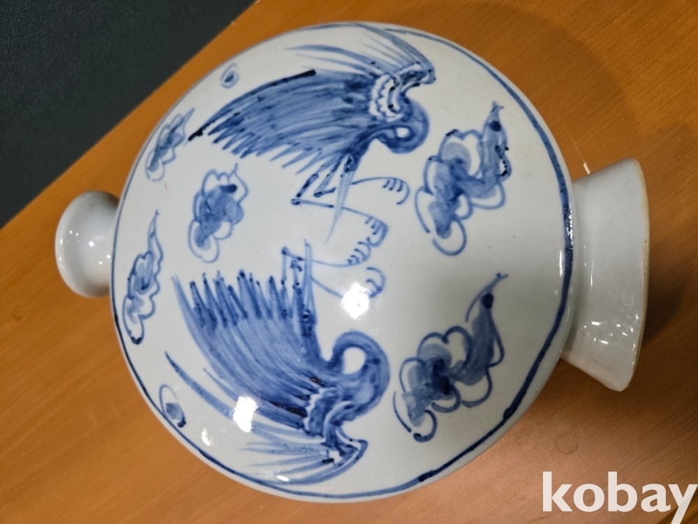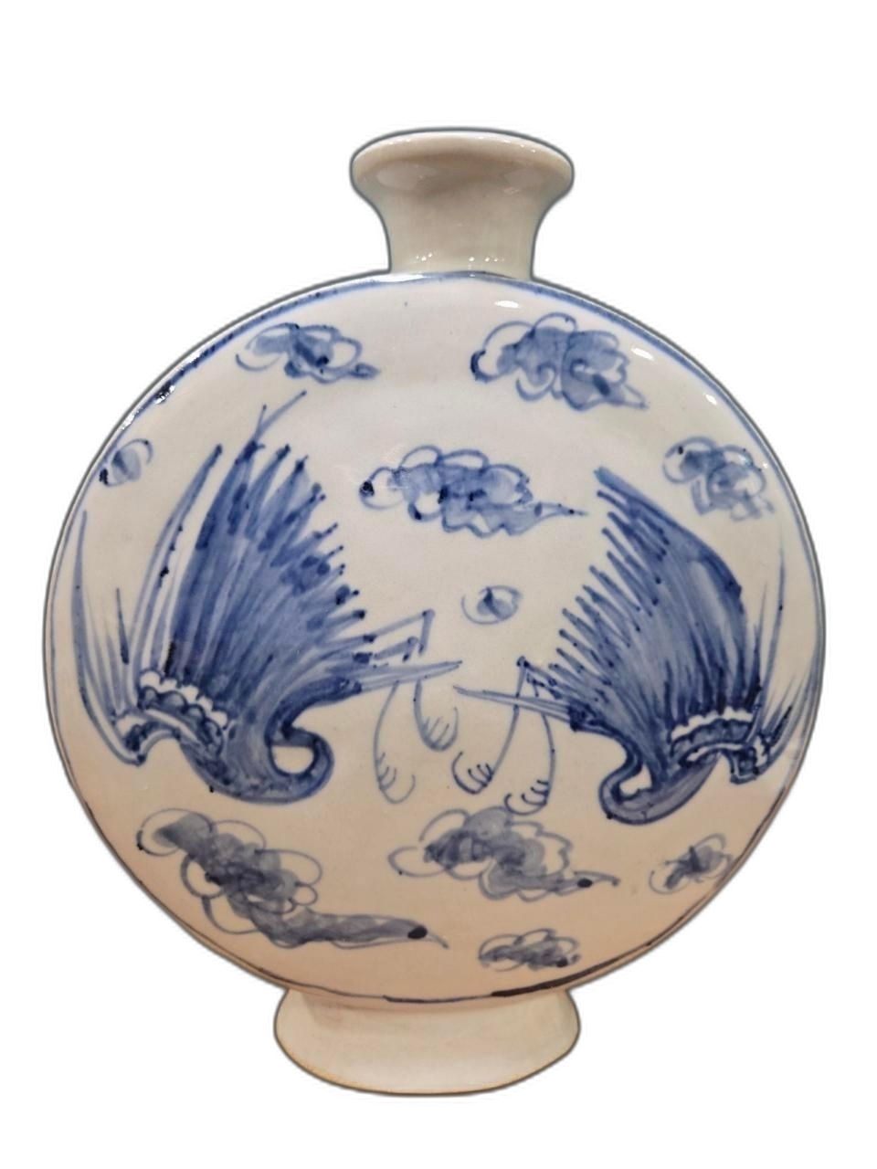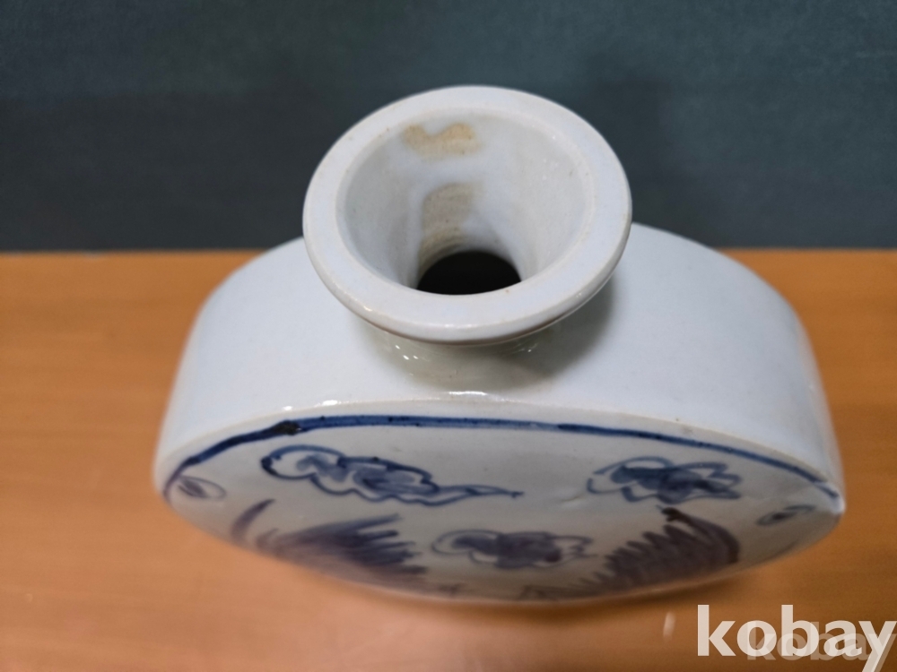 양쪽에 새 표현 둥근 편병 도자기 입니다.