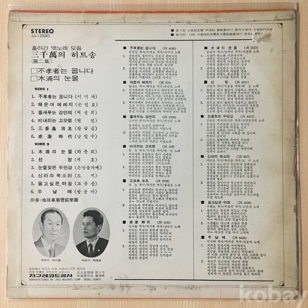. 가요음반 대부분은 휘어짐이나 손상을 방지하기 위해 무지싱글자킷을 하나 더 사용하여 보관되었던 음반들입니다.