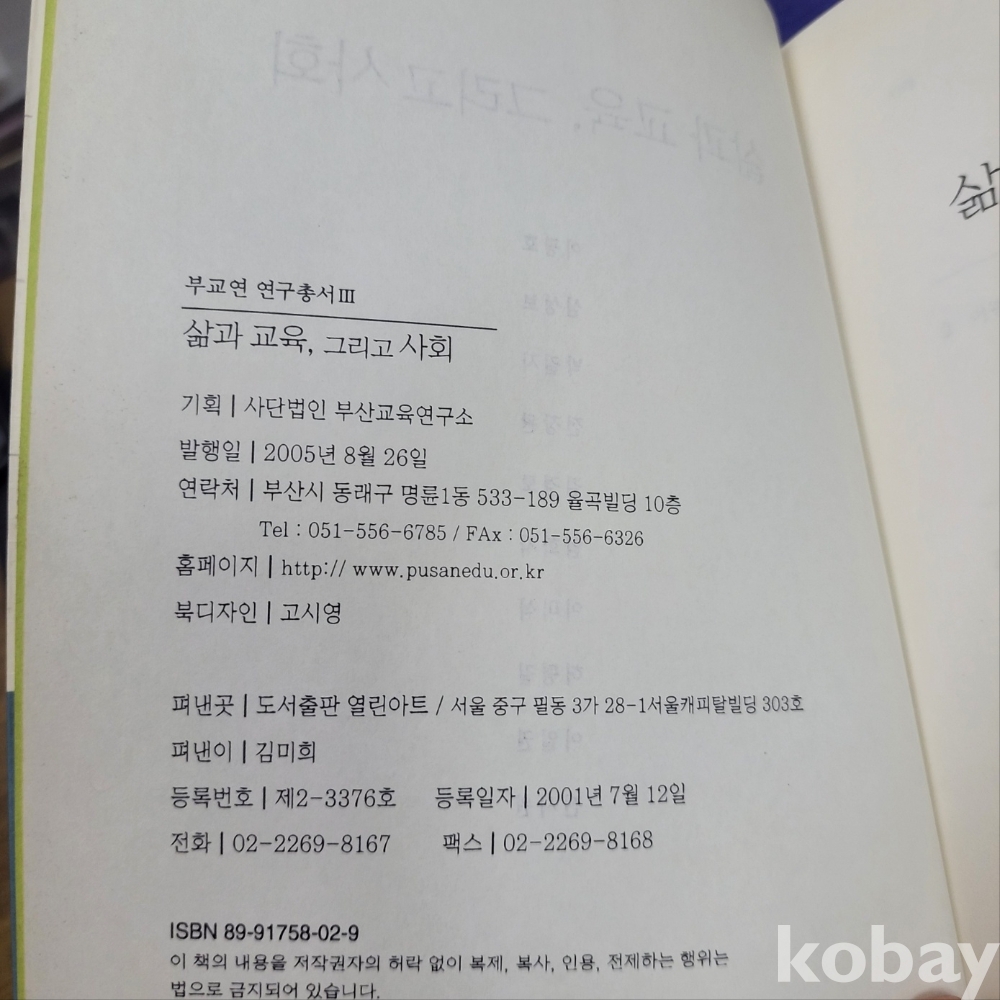 [천원경매] 삶과 교육 그리고 사회 / 부교연 연구총서