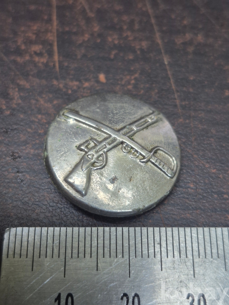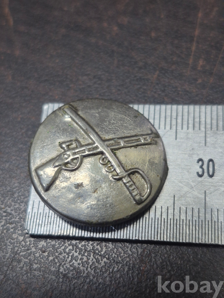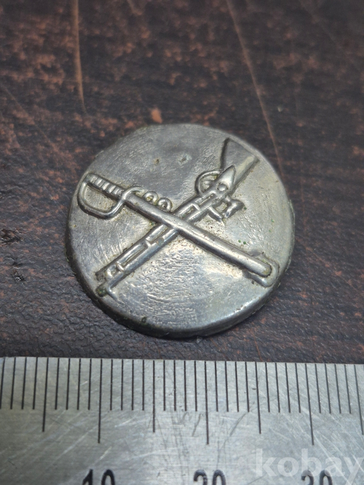 1950년대 총과 검이 교체되게 양각으로 새겨져 있는 뱃지 뱃찌 1점 재질 백동OR 알루미늄으로 추정 2.5*2.5*1