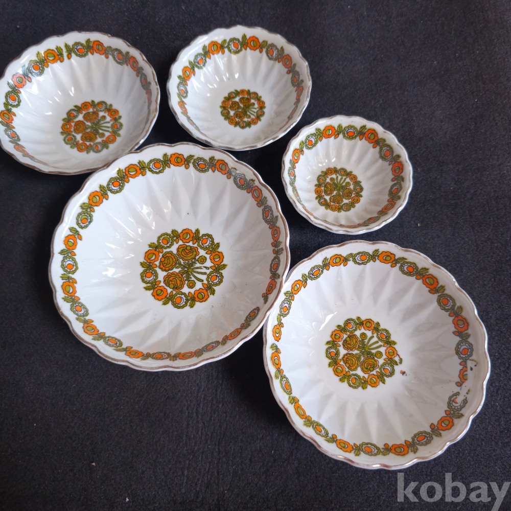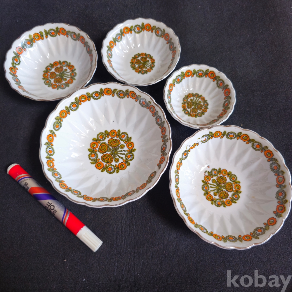 (고전도자기접시) 오래전 GOLDEN APRICOT 행남사 각기 크기가 다른 도자기접시 5종세트