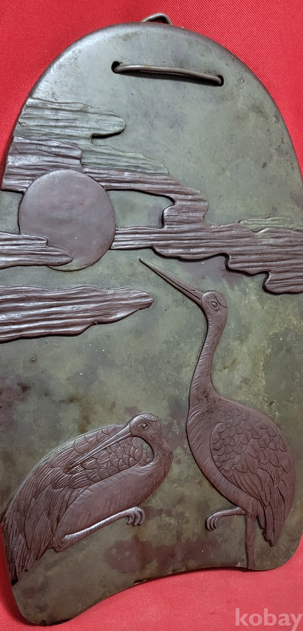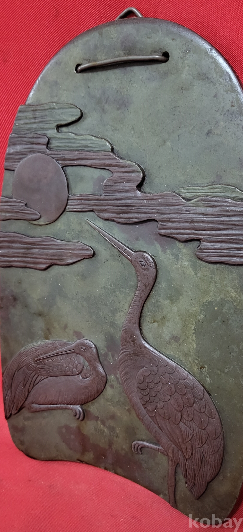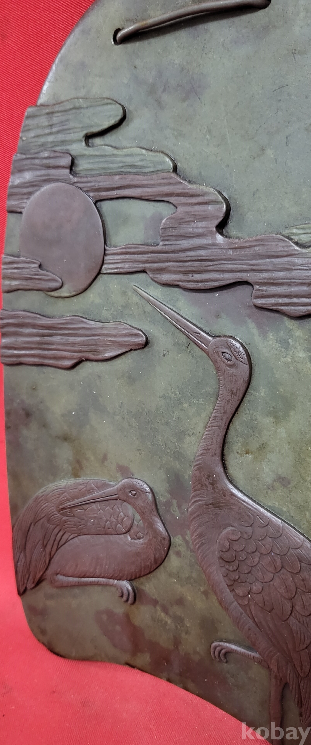 청옥(靑玉)으로 완성된 구름과 달 그리고 두마리의 학(鶴) 한쌍문양 장식품입니다,