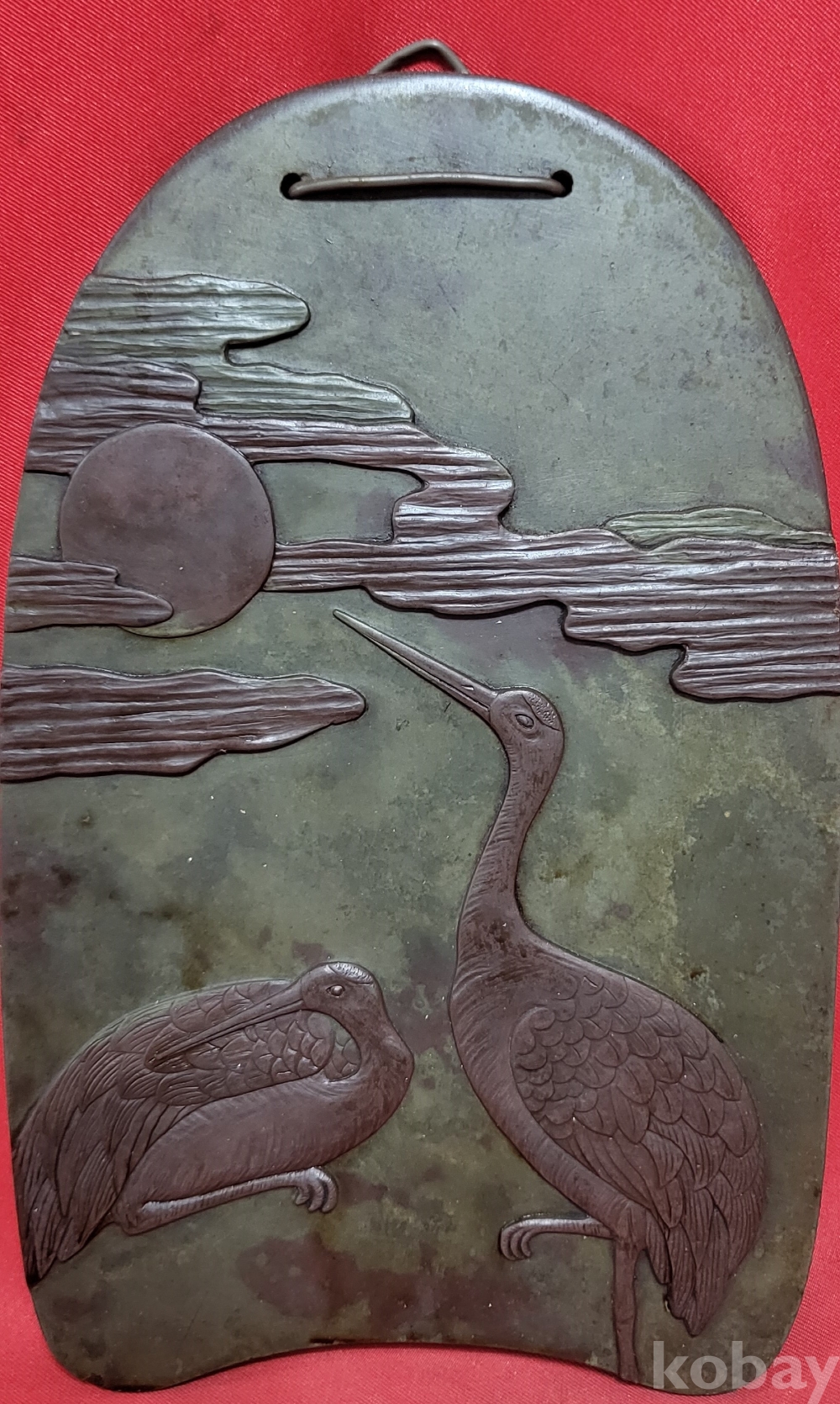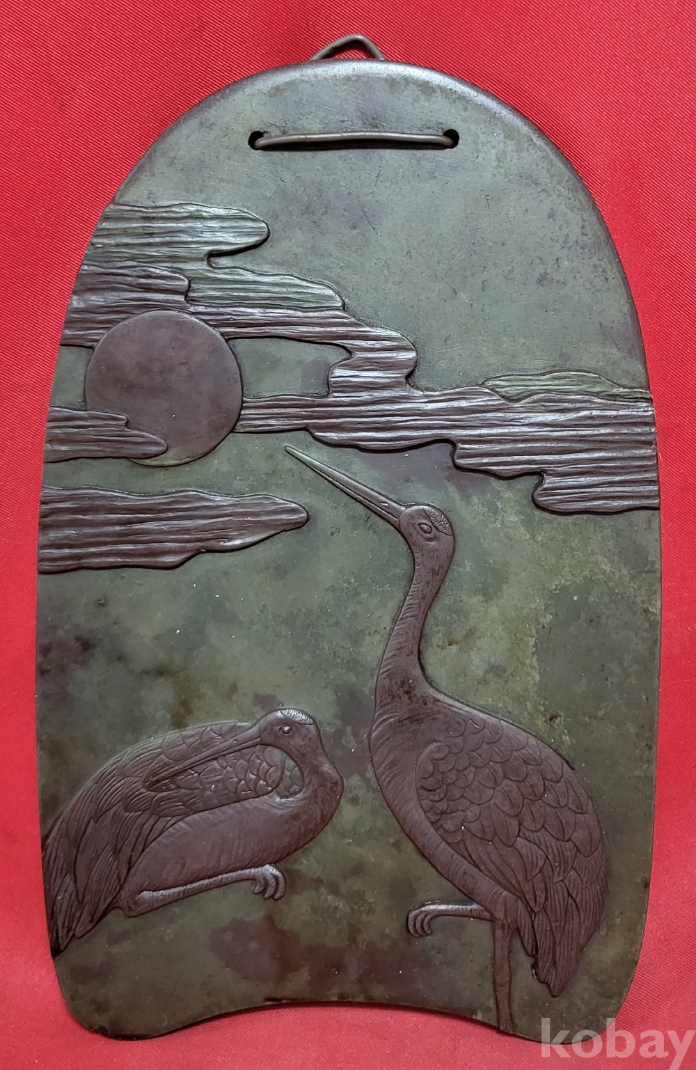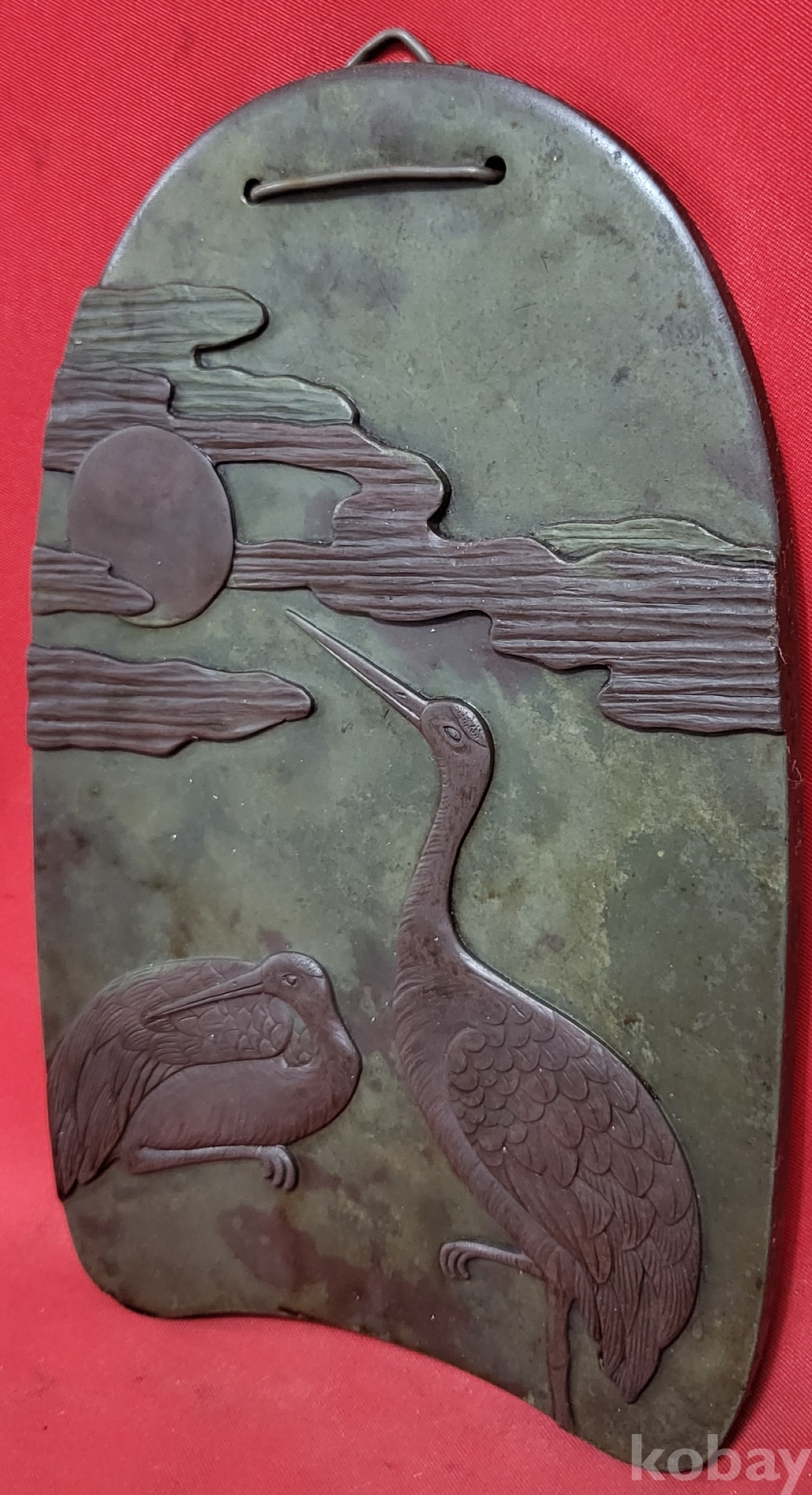 청옥(靑玉)으로 완성된 구름과 달 그리고 두마리의 학(鶴) 한쌍문양 장식품입니다,