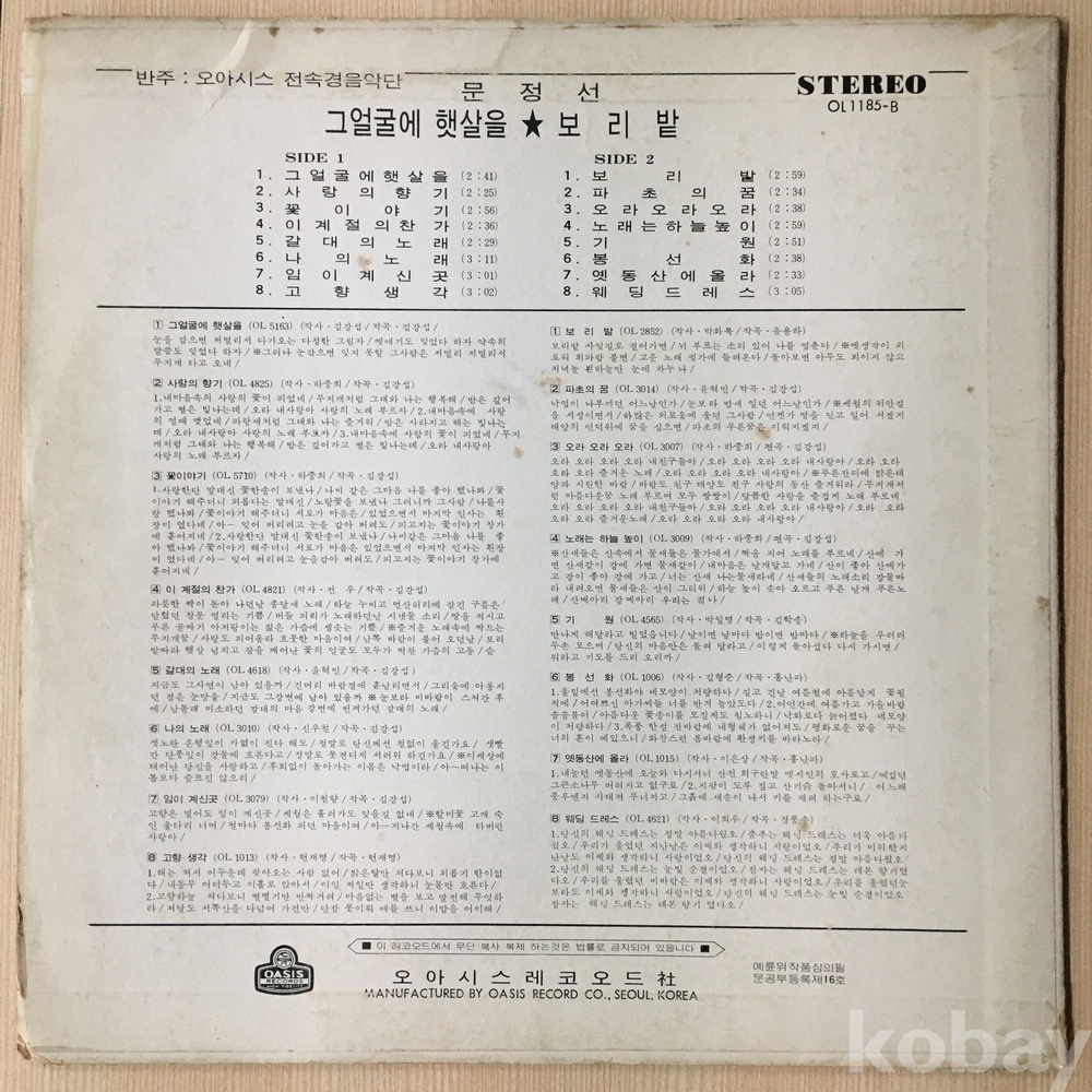 ⊙ 1975년 / 오아시스레코드 - OL 1185-B