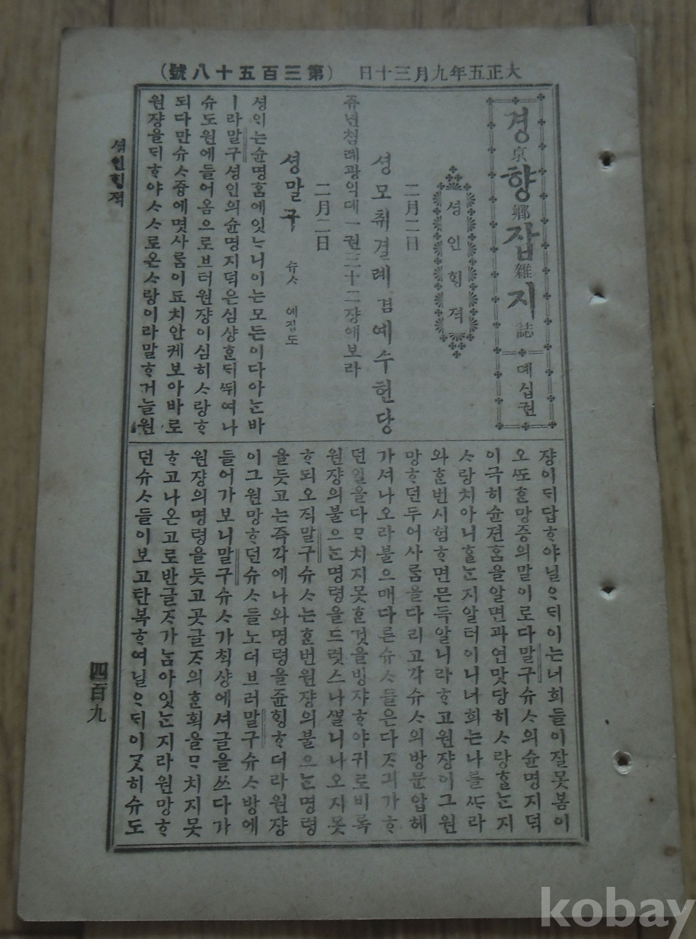경향잡지는 당시 한 달에 두 번 15일. 30일 반월간지로 발행.
