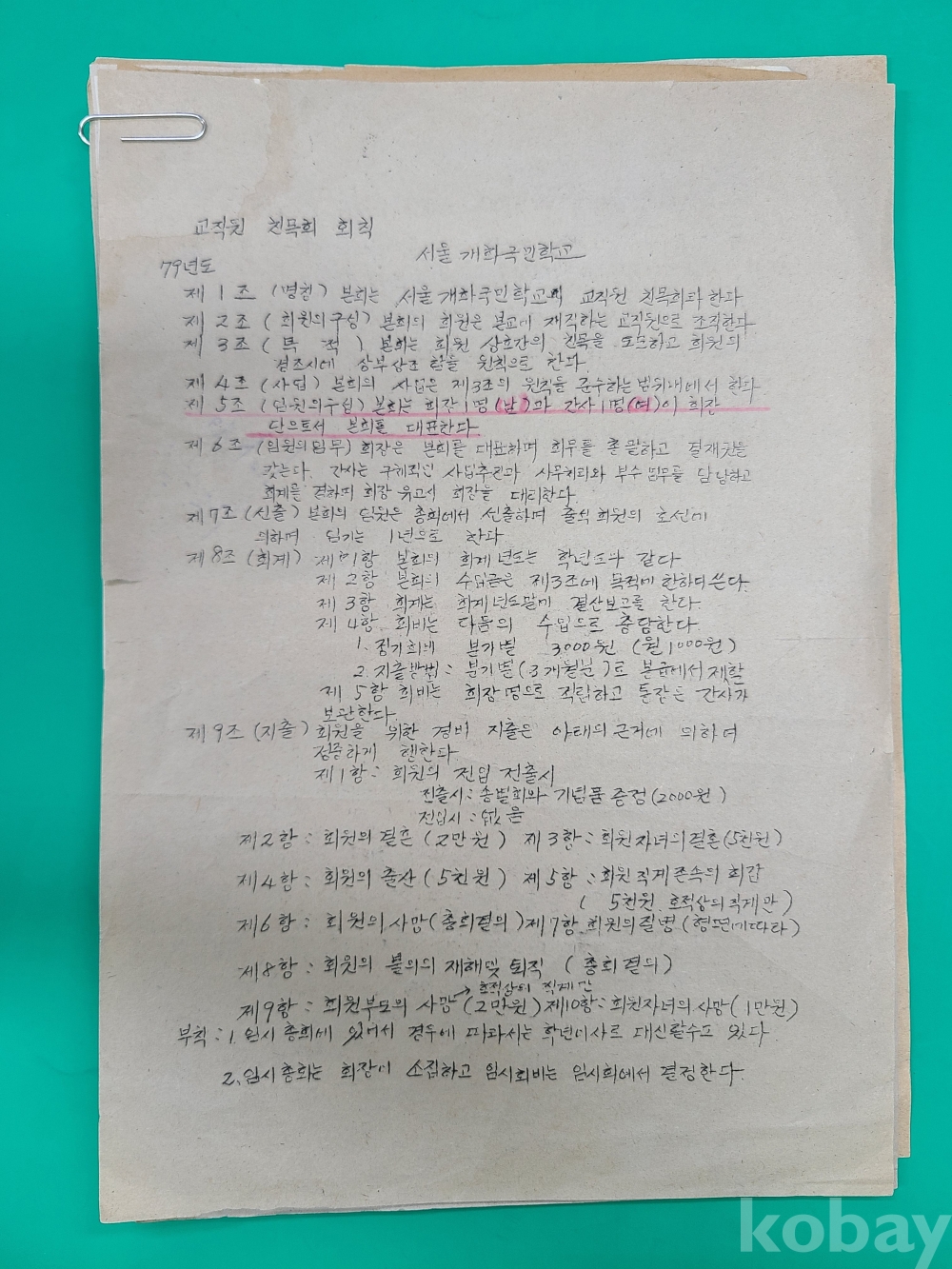 **** 1979-81년도 서울개화국민학교 자료/정화업무추진계획, 교직원 친목회 회칙, 교과진도표 등/약18장