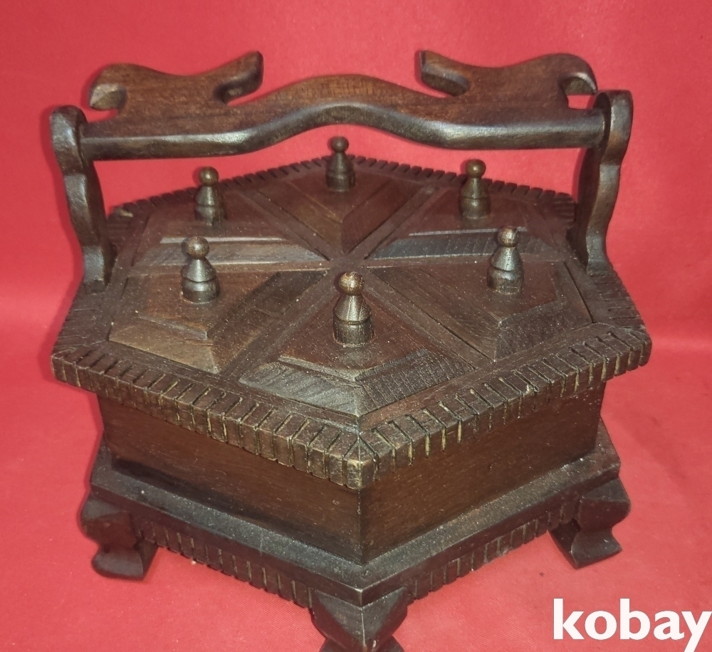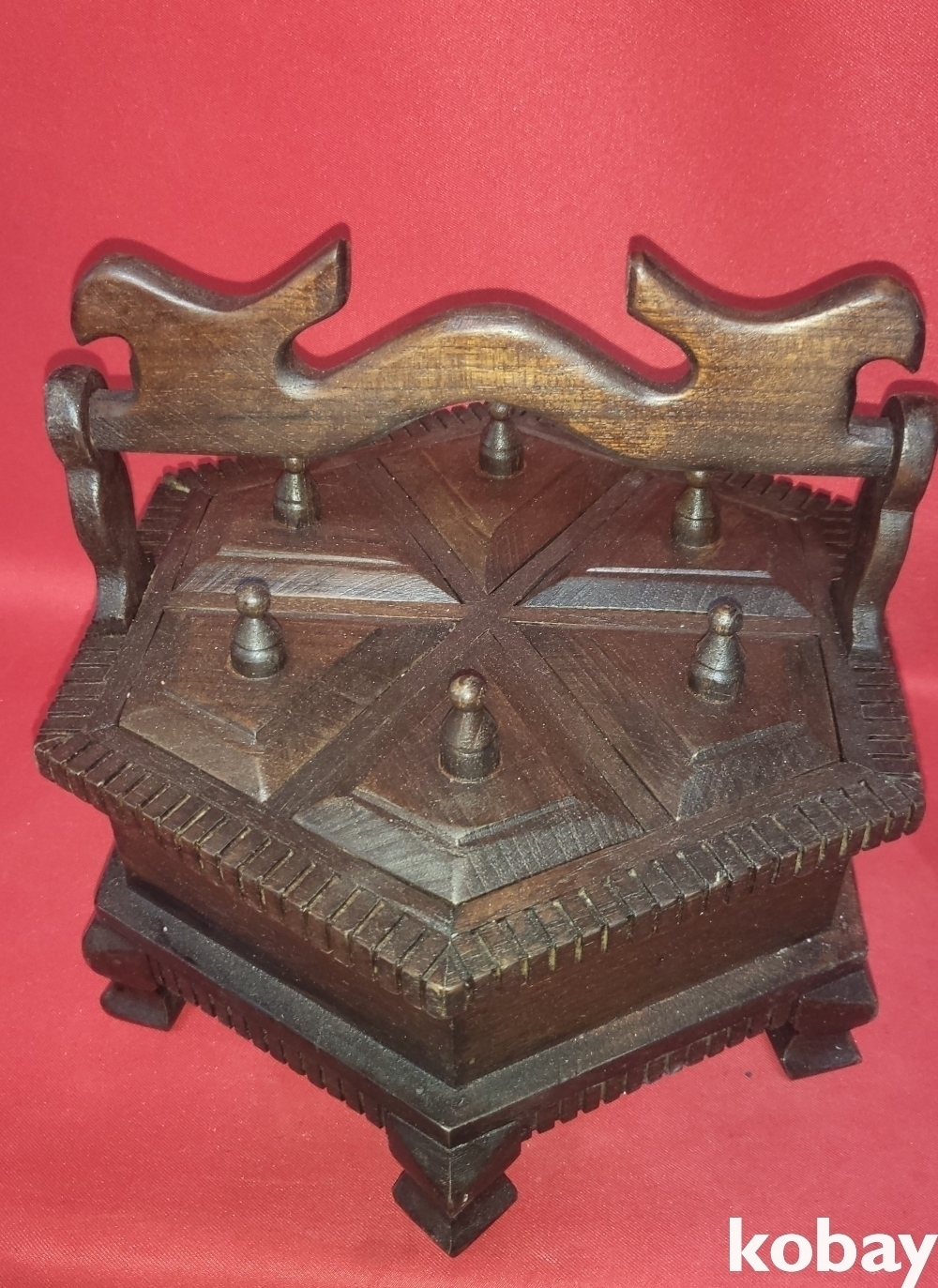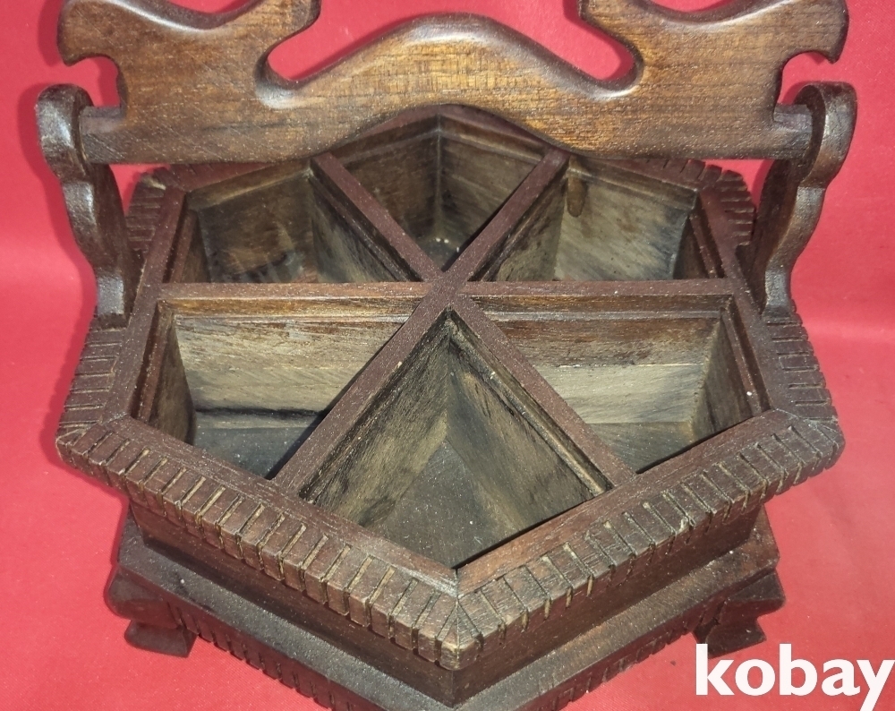 붉은색 최고급 나무로 완성된 6칸 짜리 6각 차통입니다,