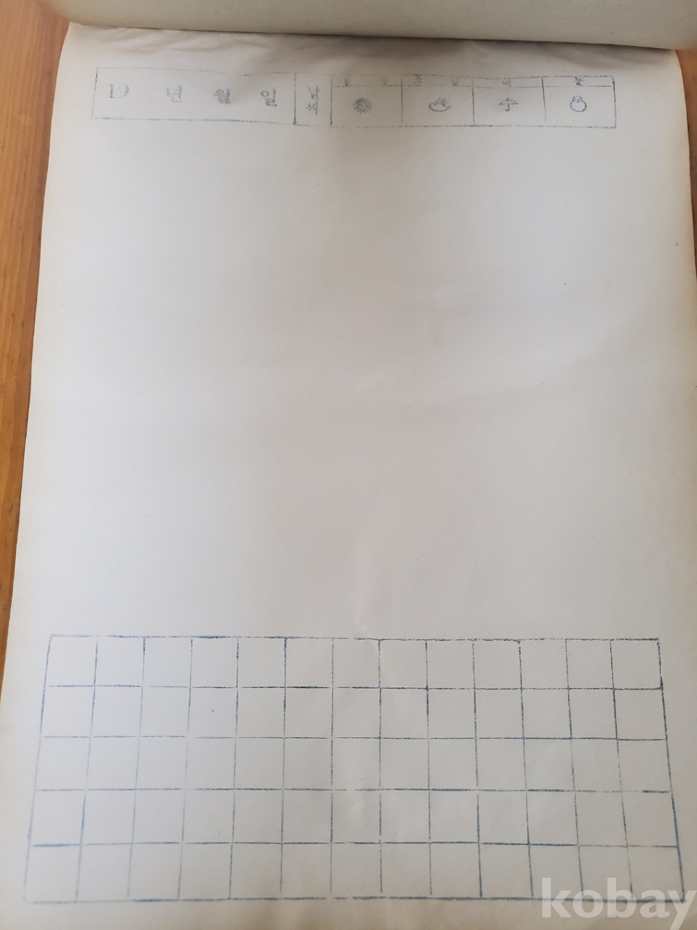 2. 큰 사이즈의 그림일기장으로 연도, 일시, 날씨, 그림 그리는 공간, 글쓰기 칸공책 부분으로 구성