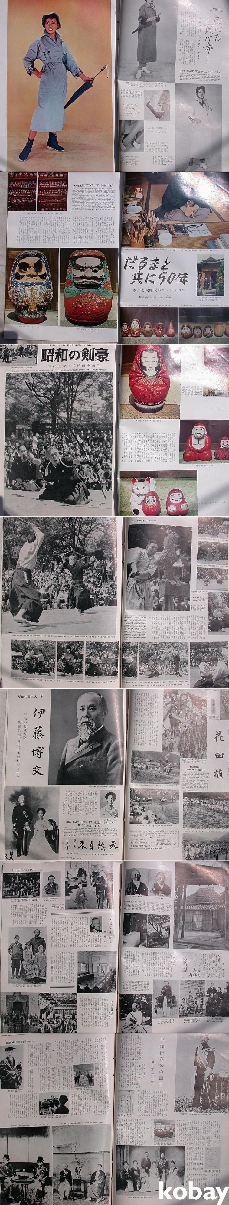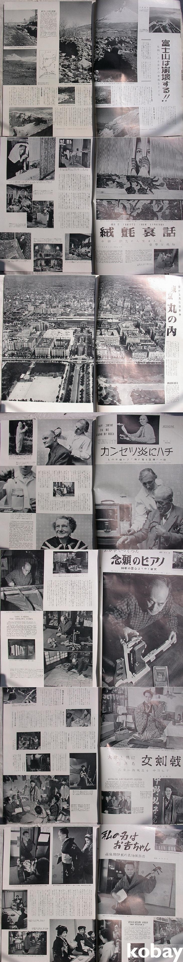 표지사진은 제23회세계탁구선수권대회 사진으로 4종목에서 우승하였다는 표지 뒷면의 <목차> 아래에 설명이 있다. 맨 앞에 이 해 3월에 타계하였다는 소타로 야스이(安井曾太郞:1888-1956년)의 <承德ラマ廟>가 대형도판으로 절첩되어 있고 뒷면에 설명이 있다. 그 밖에도 초음속 전투기, 꽃축제, 후지산 붕괴, '명치의 일본인' 이등박문 등의 기사들이 있다. 이등박문에 관해서는 7쪽에 걸쳐 사진자료들과 함께 안중근 의사의 모습도 있고 연표가 있다. '부록'으로 고야의 <나체의 마야>라는 <목차>의 소개는 <사고>에 애독자에게 <스페인명화집>을 증정한다는 설명이 있다.