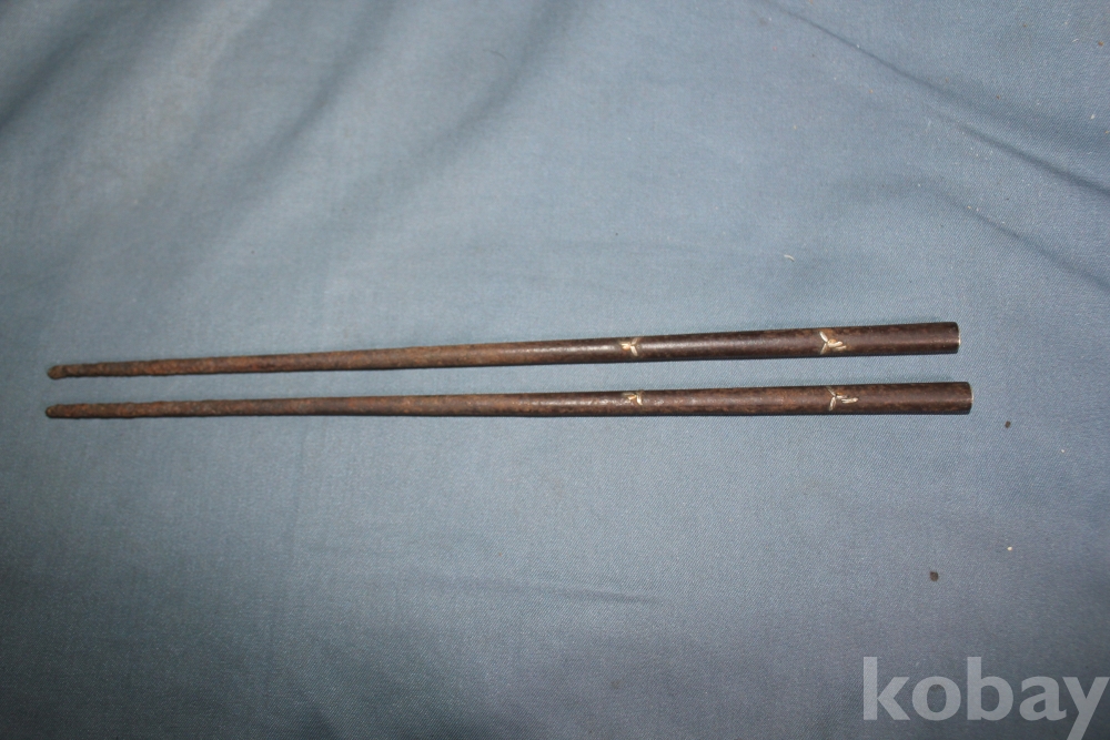 속이 빈 철로 만든 젓가락 손잡이 부분에