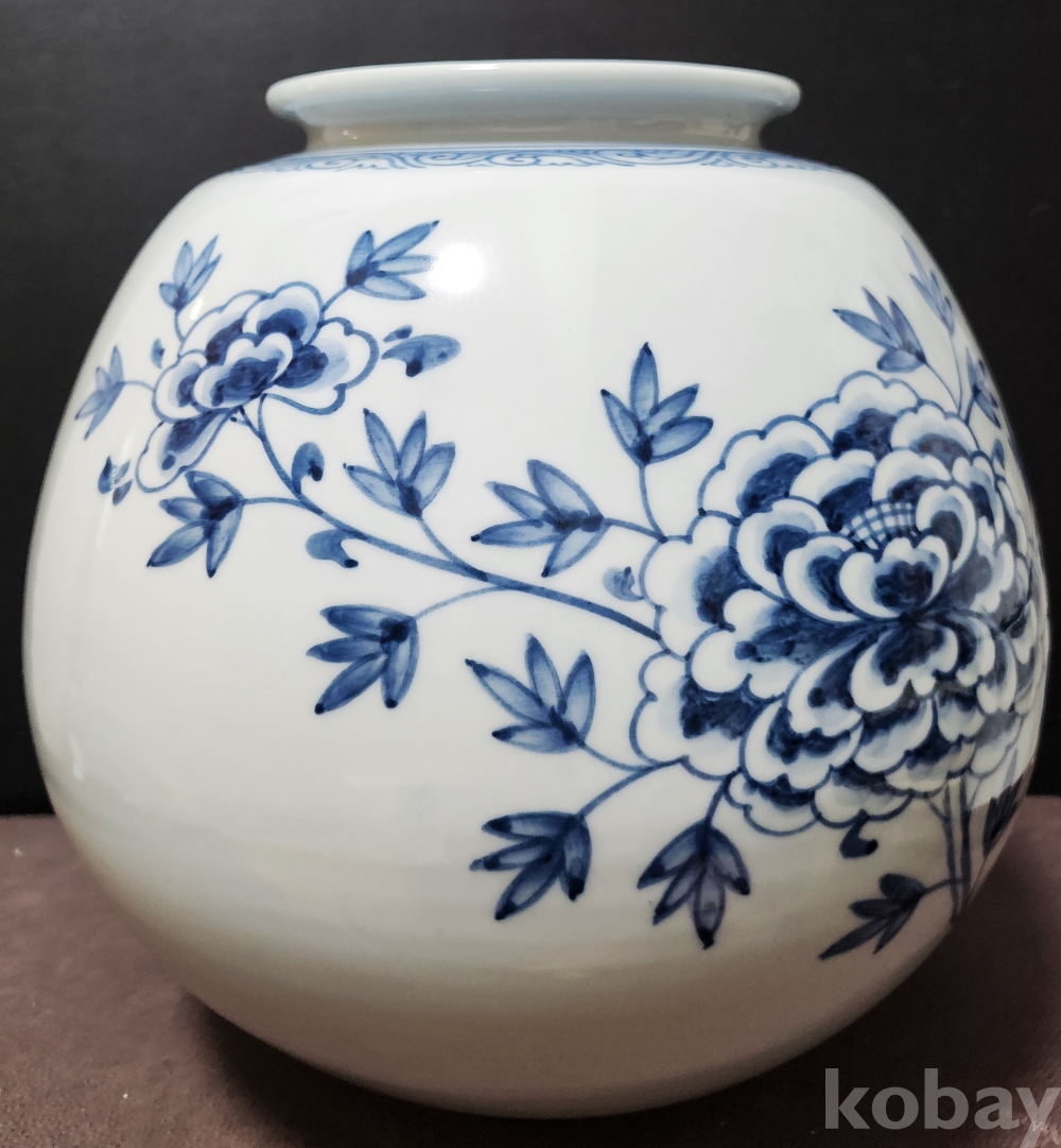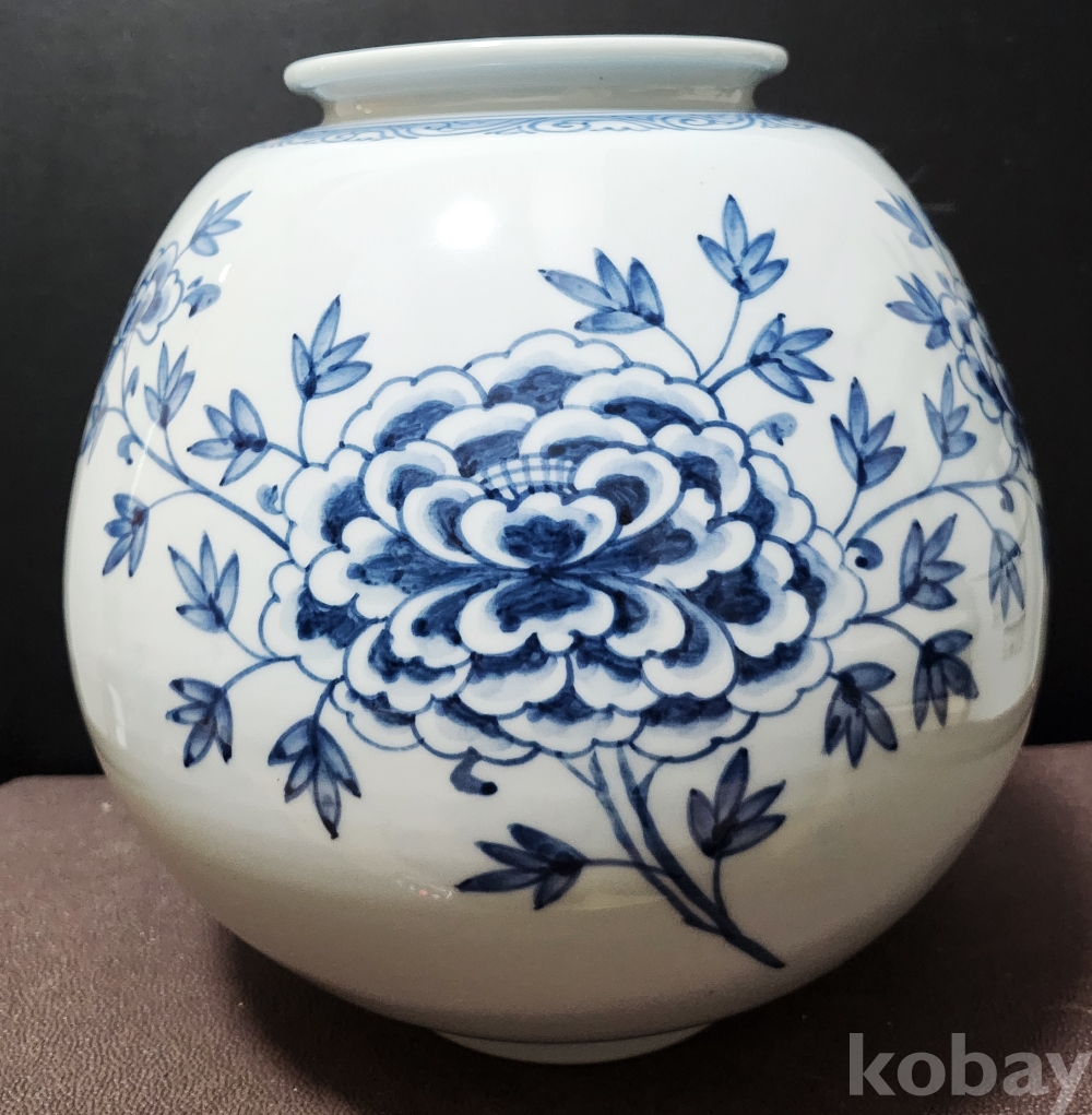도예명장 "성전[星田] 임일남[ 林一男]" 도예가 作品 백자청화모란문호 白磁靑華牡丹紋壺