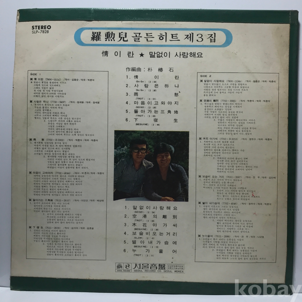 | 자켓상태 | EX : 약간의 마모, 모서리 찢김 존재 | 음반상태 | VG : 생활 기스 다수, 가벼운 노이즈 존재 | 발매정보 | 알수없음 | 가사지여부 | 무 |