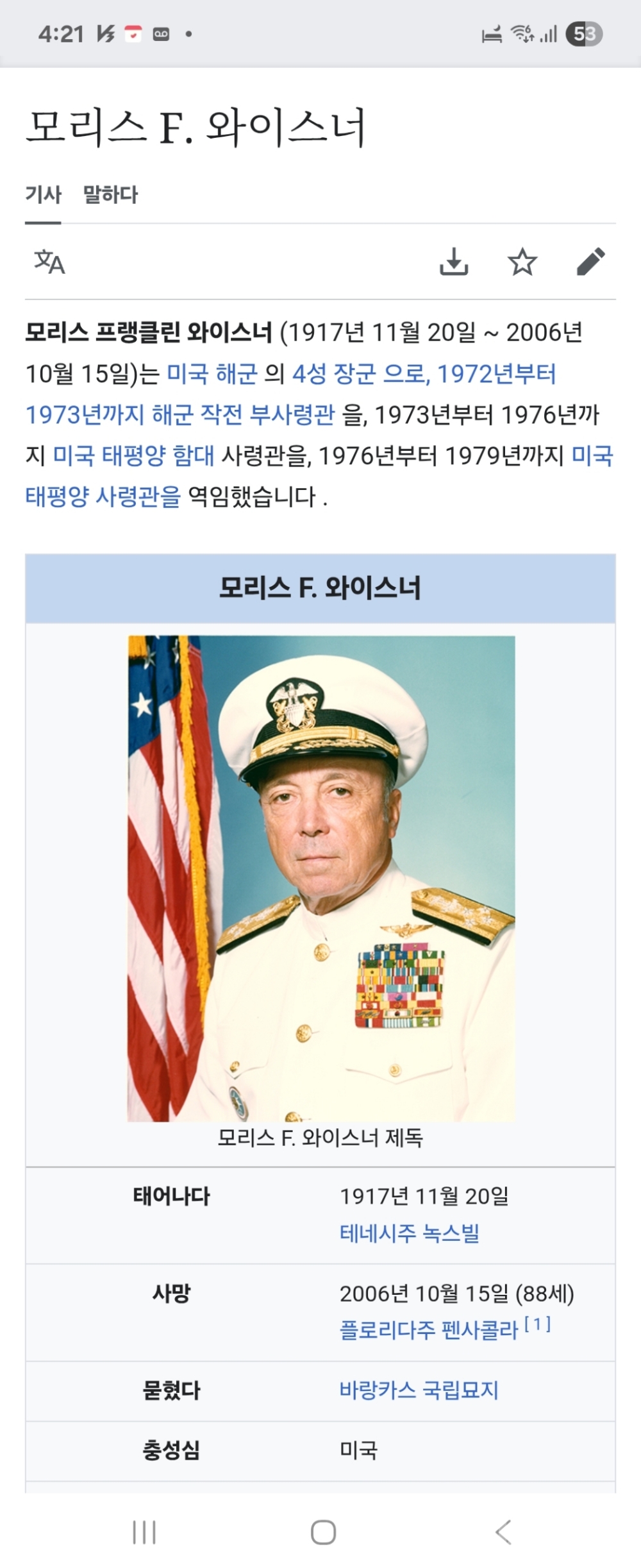 미 해군7함대사령관 와이즈너가 수여, "PRESENTED BY VADM M.F. WEISNER COMSEVENTHFLT"라는 문구가와 3스타 패치가 있습니다.