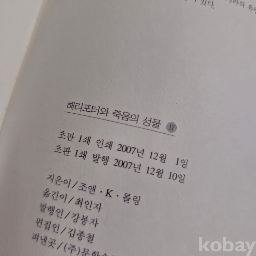 (((천원경매))) (((서적))) 해리포더와 죽음의 성물 (아웃케이스) 전 4권 (2007년초판 1쇄)