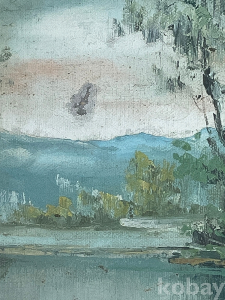 작가는 안정된 구도 속에 호수의 수면에 반사되는 하늘빛과 수목의 그림자를 섬세하게 포착하며,