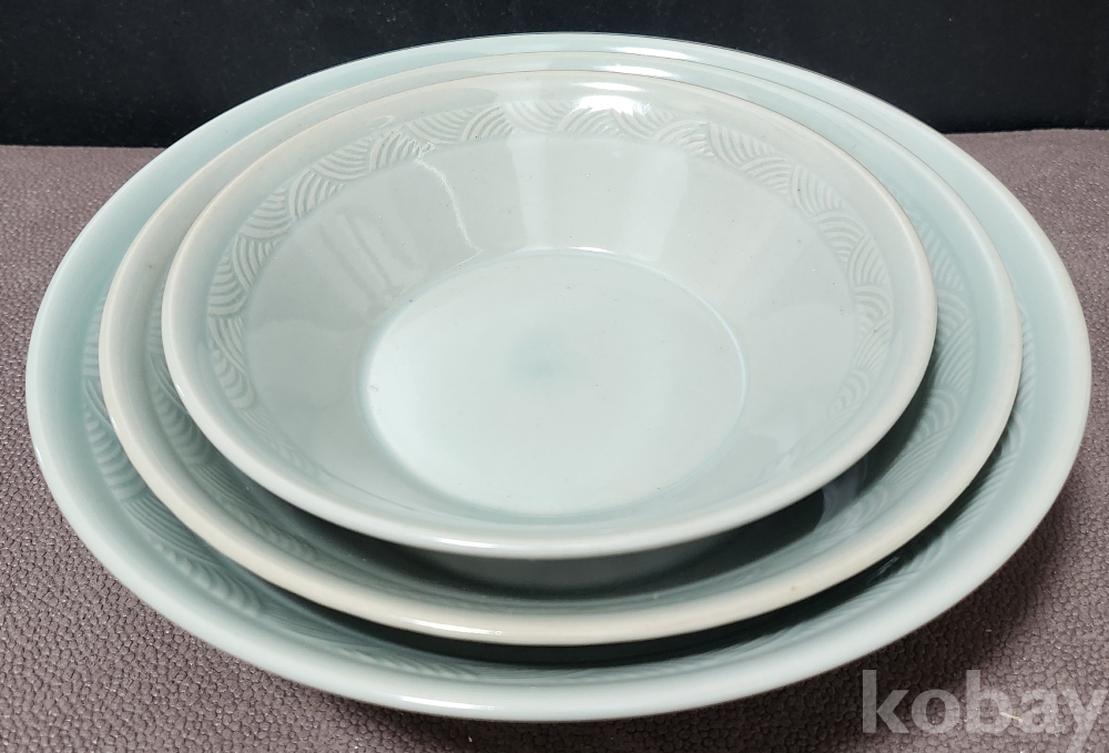 강진청자접시 康津靑瓷楪匙 3점 세트 < 미사용 박스완비 작품 >