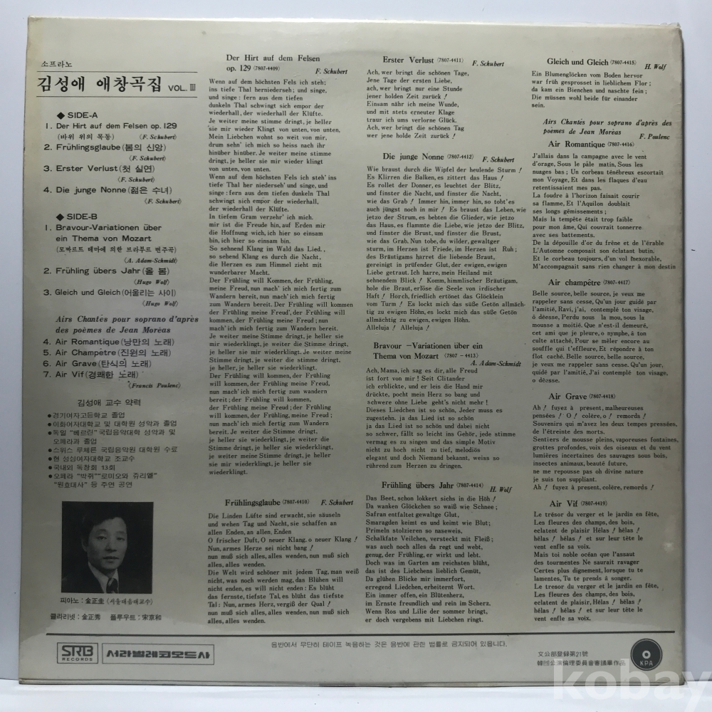 미개봉 LP 35,150-55 소프라노 김성애 애창곡집 . ` 서라벌 자켓 SS 알판 SS
