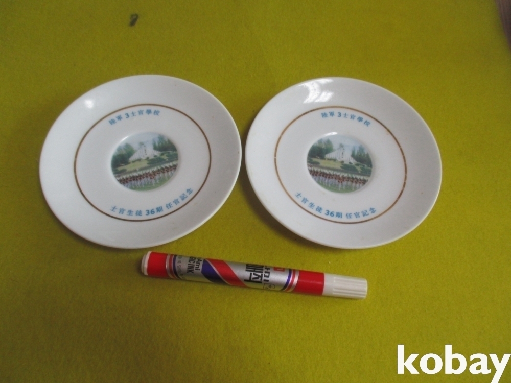 (((군자료))) 오래전 陸軍3士官學校 士官生徒 36期 任官記念 도자기 소서 2점