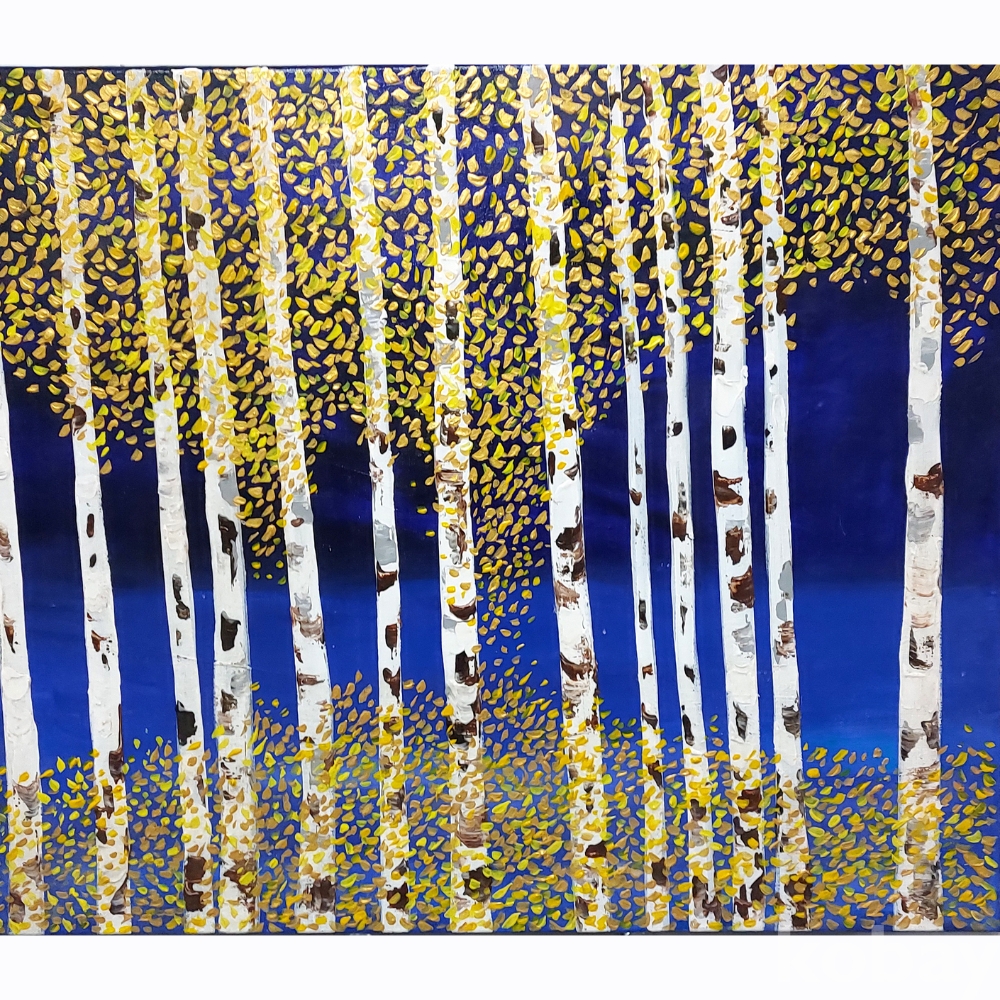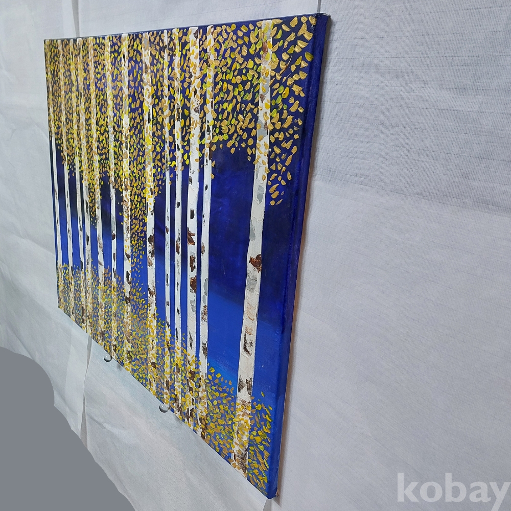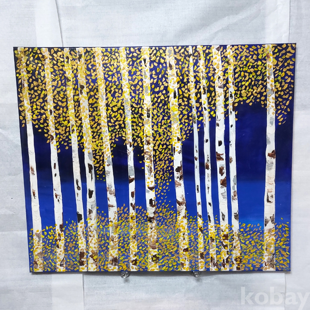 제목: (유화)- 나무캔퍼스 (자작나무)