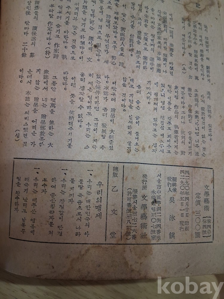 『문학예술』5월호, 문학예술사, 1957.6.1, 상태 좋음.
