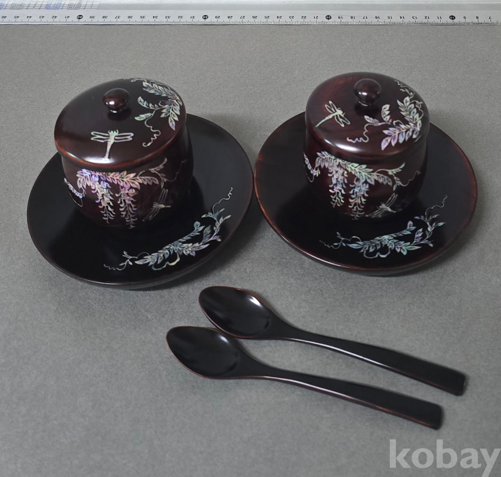 행촌칠예 공방 무형문화재13호 옷칠장 이의식 선생님의 나전칠기 찻잔 세트 입니다.