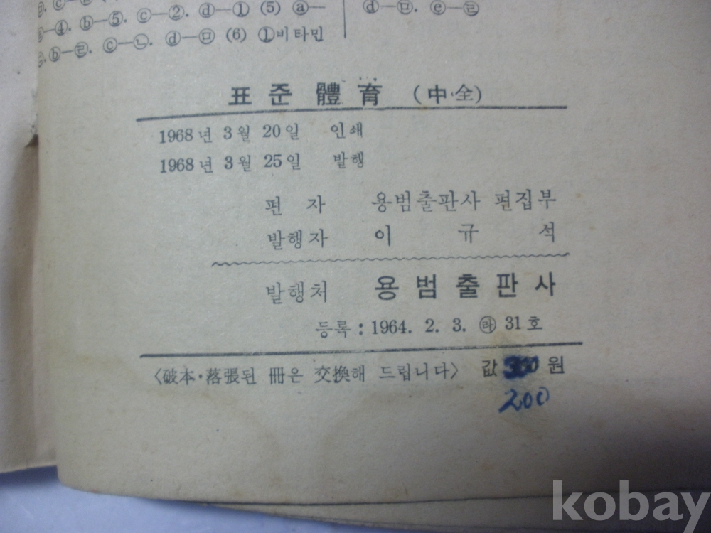(중학교) 표준 체육 (1968년, 용범출판사)
