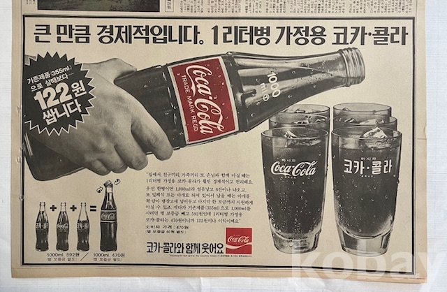 상표가 컬러로 되어 있고 1L 병 광고는 희귀한편입니다.
