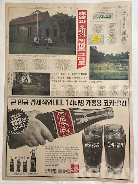 코카콜라 신문광고가 실린 1981년 한국일보 신문낱장입니다.