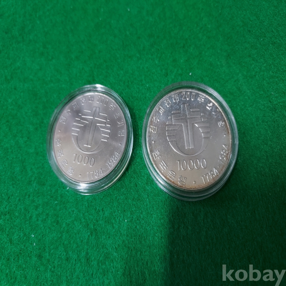 한국은행 1984년 천주교전래200주년기념 10000, 1000원화 2매 미사용