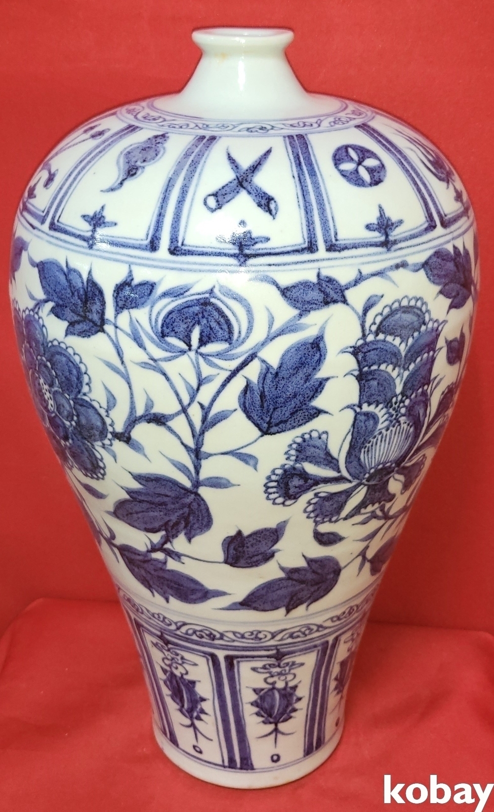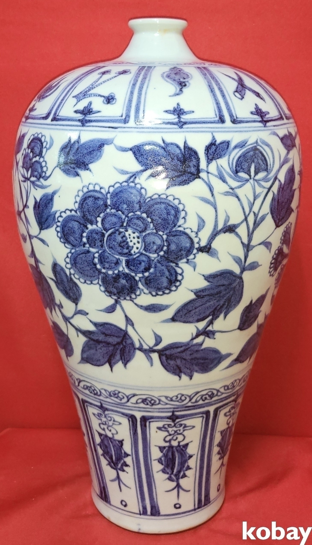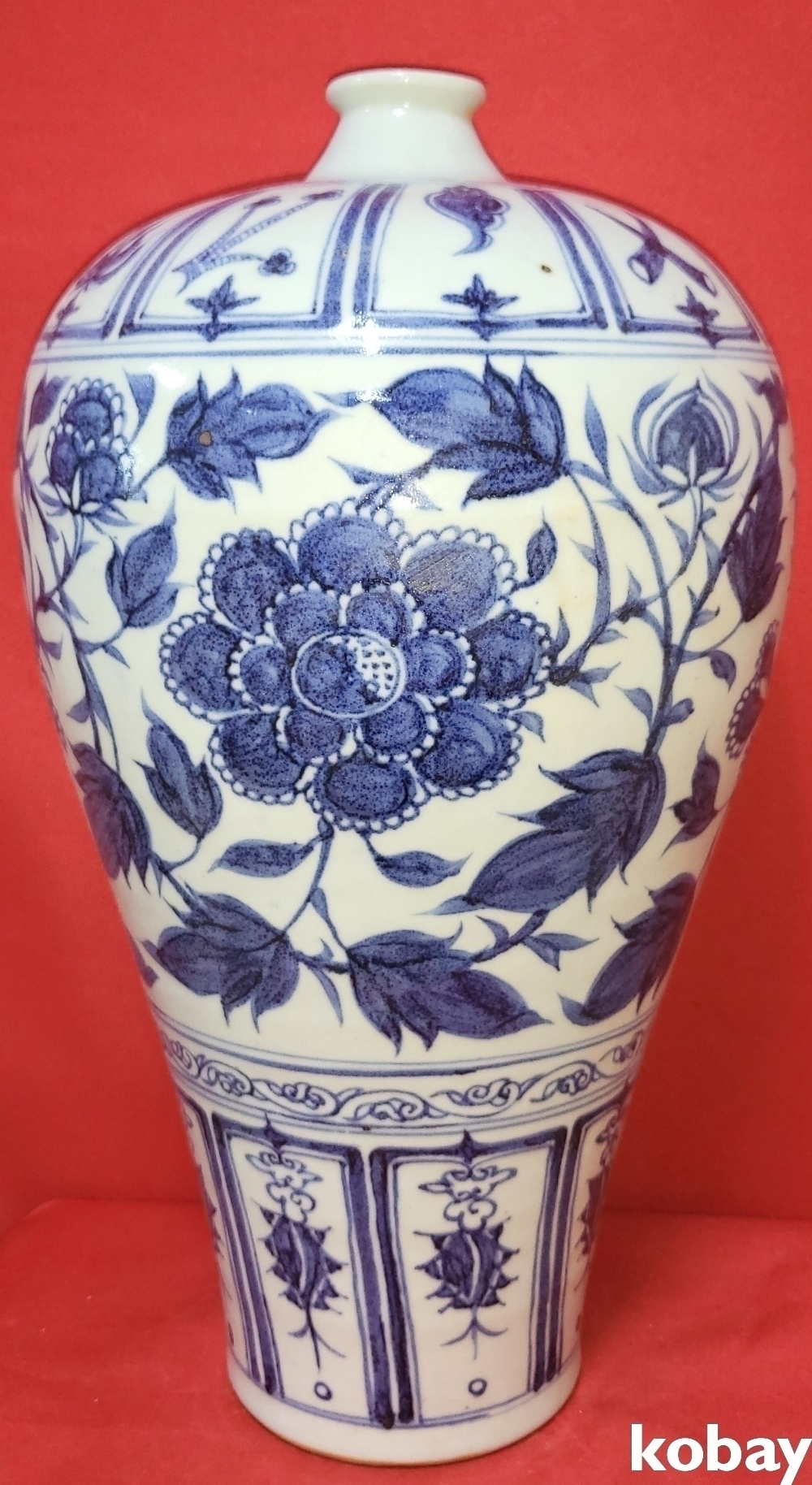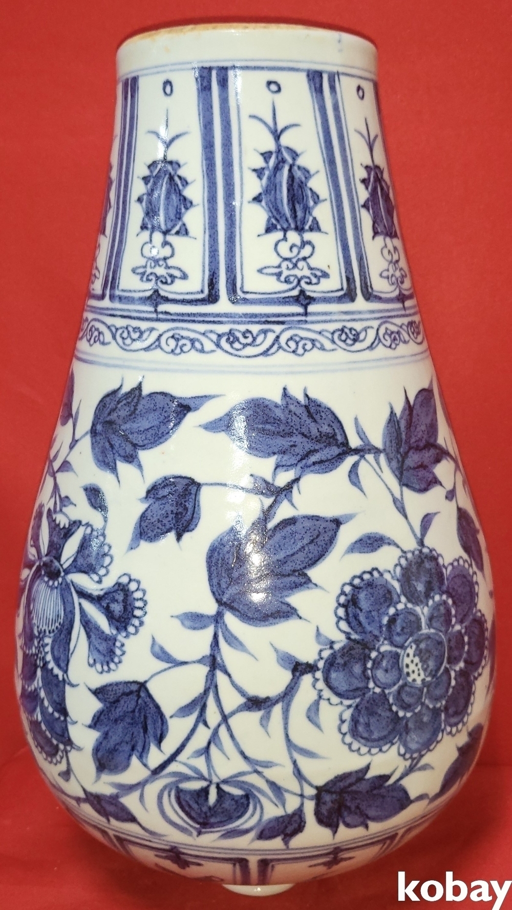 코발트 청화 화훼 꽃문양 징기스칸 관지 대원국성길사간만세만세만만세 큰 매병입니다