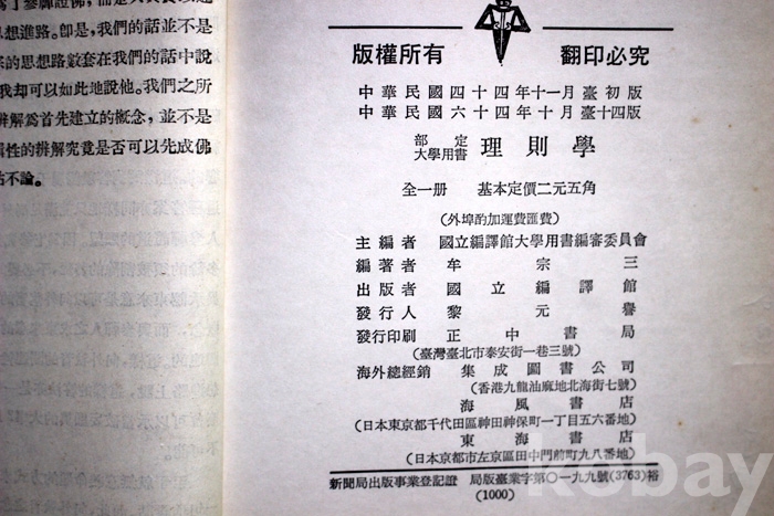 (중국서적) 理則學(리칙학) - 1975년. 중국발행 ...