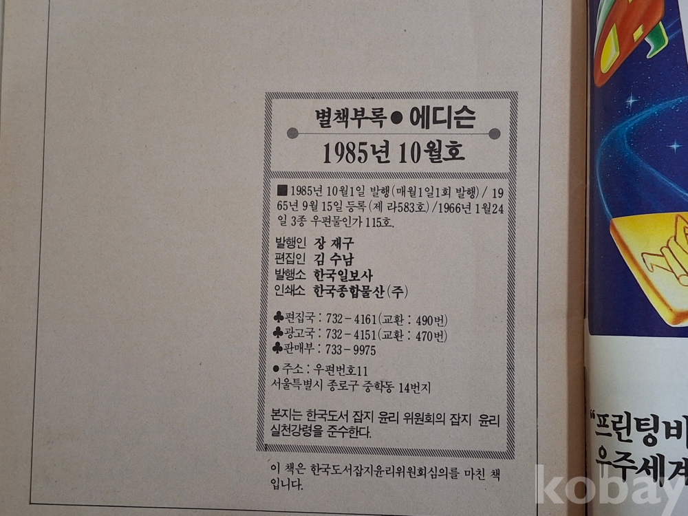(추천) 학생과학 별책 부록 만화 에디슨 (85년 10월 발행)