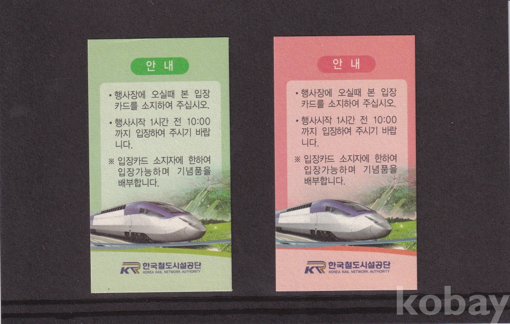 - [기차, 전철, 버스 승차권 모음展] - 2012년 원주-강릉 철도건설 기공식 입장카드 2종