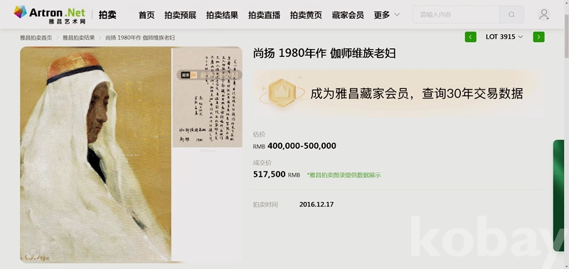 그의 대표작(황하선부)는 이미 2011년 폴리옥션에서 3,100만위안을 기록하며