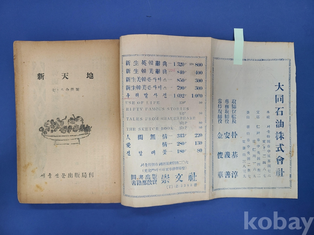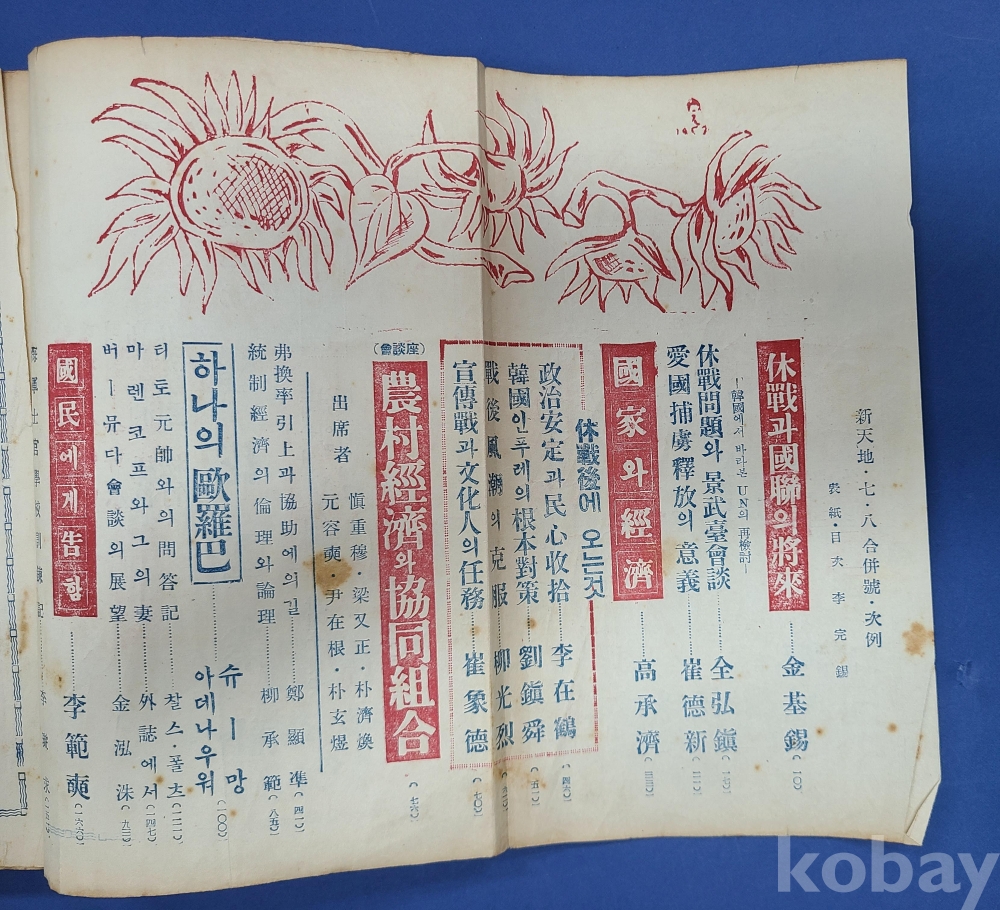 韓國戰爭 休戰 특집이 수록된 [新天地]. 1953년 7.8월 합병호