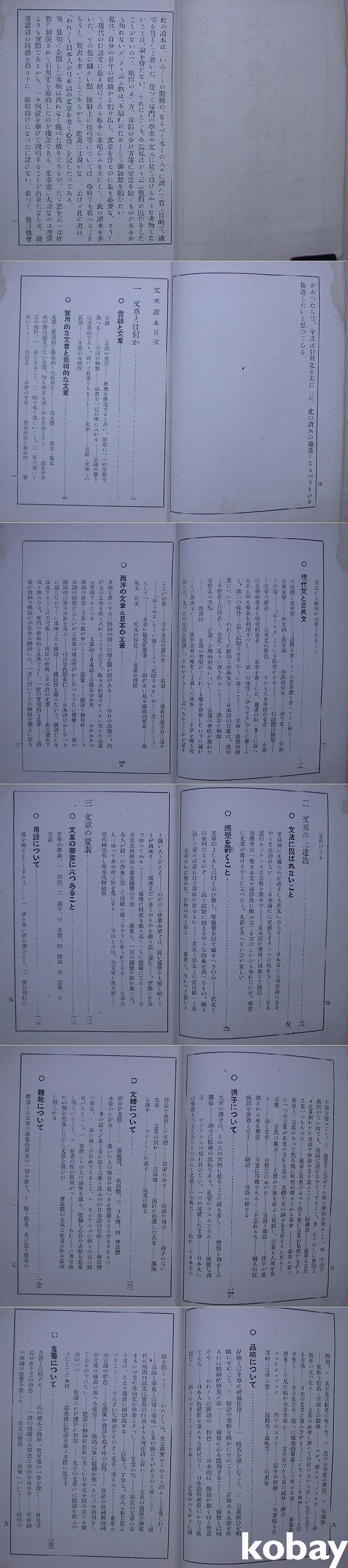 본문은 문장이란 무엇인가, 문장을 익히는 법, 문장의 요소의 3부로 구성하여 각각 주제별로 나누어 서술하였다. 현대문과 고전문, 예술적인 문장이라든가 문체, 체제, 품격, 함축 등 문장의 요소를 다룬 항목들이 보인다.