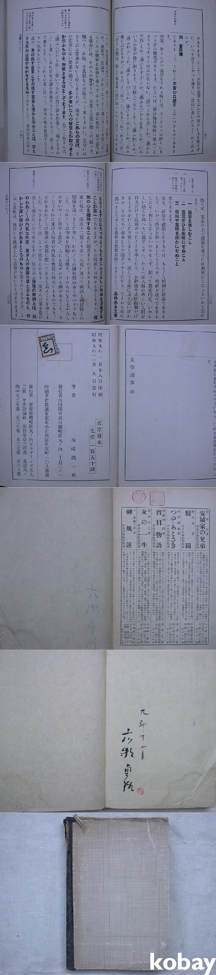 ▒ 소화 9년(1934년) 일본의 토쿄 中央公論社에서 발행한 谷崎潤一郞 저, <文章讀本> 초판본이다.