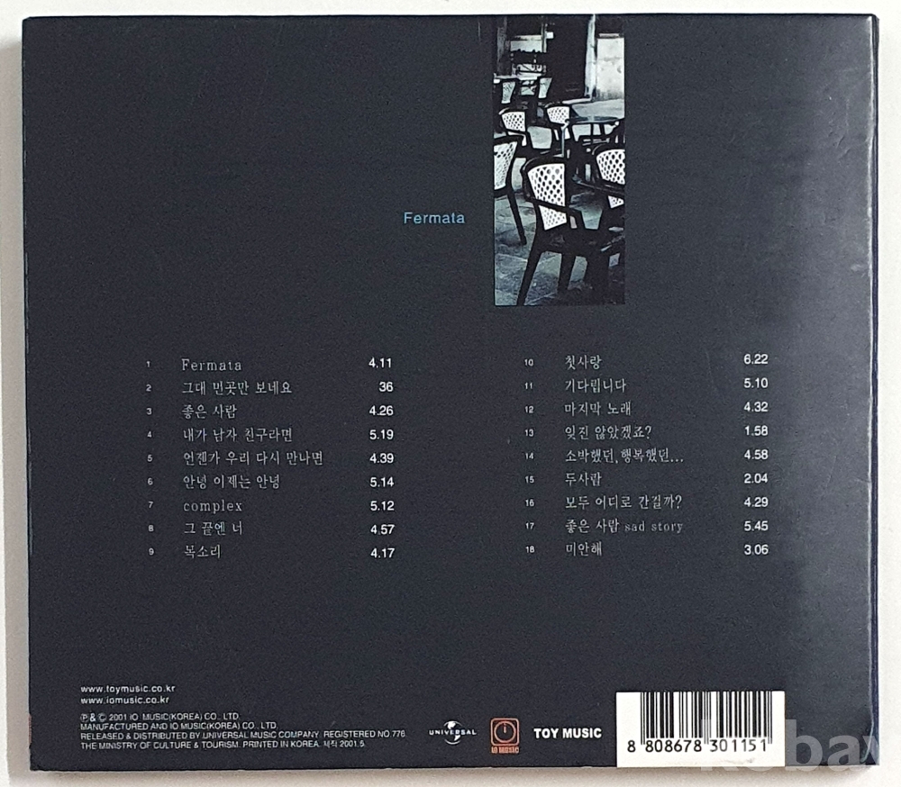 물 품 명 | 토이 TOY 5집 정규 앨범 Fermata 김현중, 이연우, 윤상, 이적, 성시경 참여 / 좋은 사람 / 2001년 |