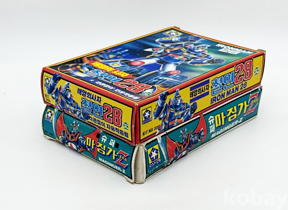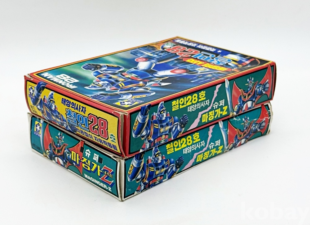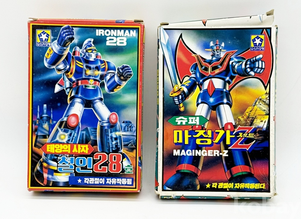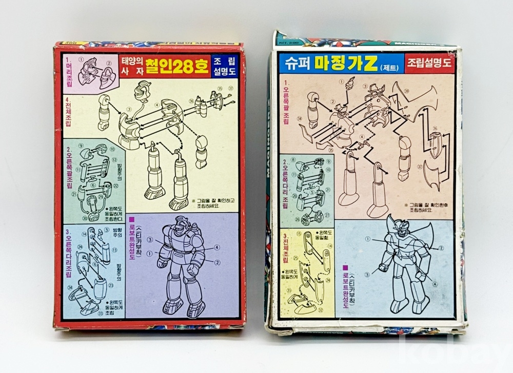 상품설명 | 1. 태양의 사자 '철인28호' 2. 슈퍼 '마징가Z(제트)' / 박스 낡아서 찌그러짐 및 찢김 있음 총 2점. | ||